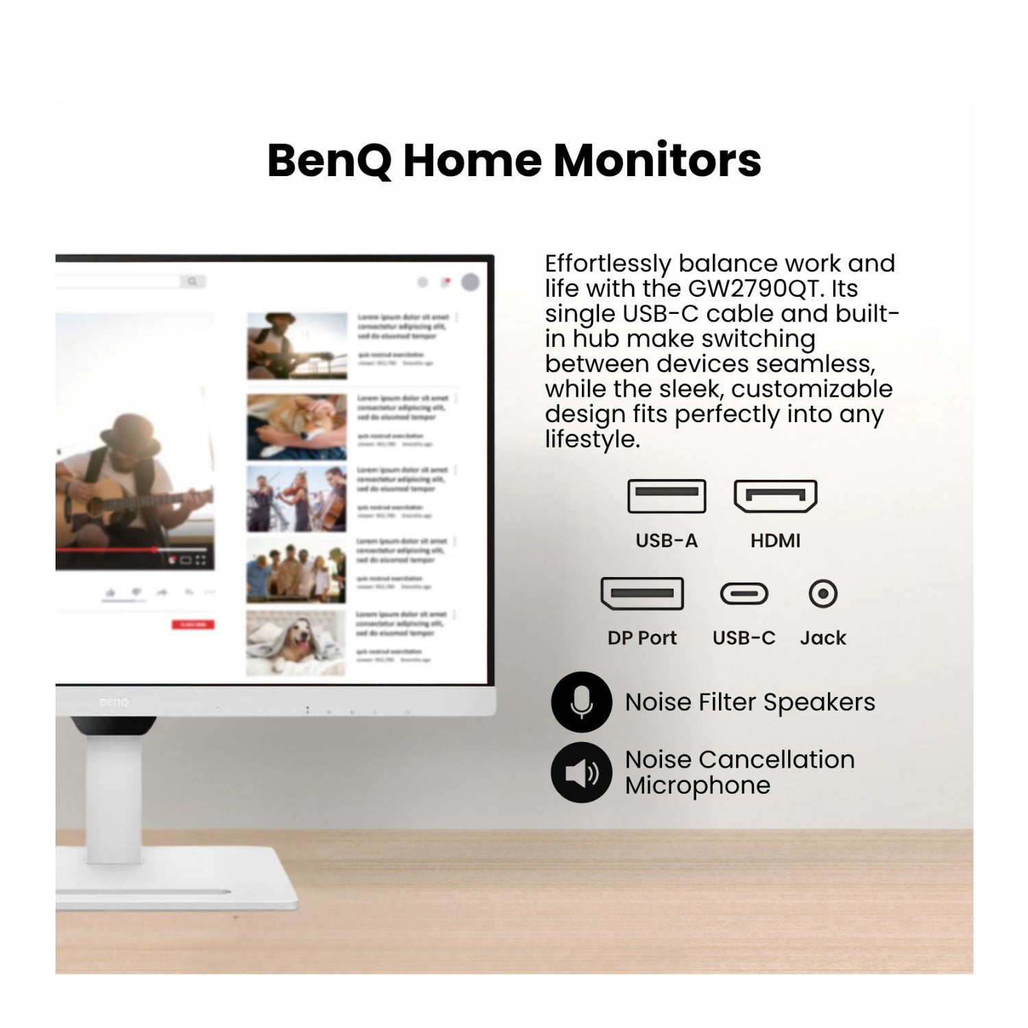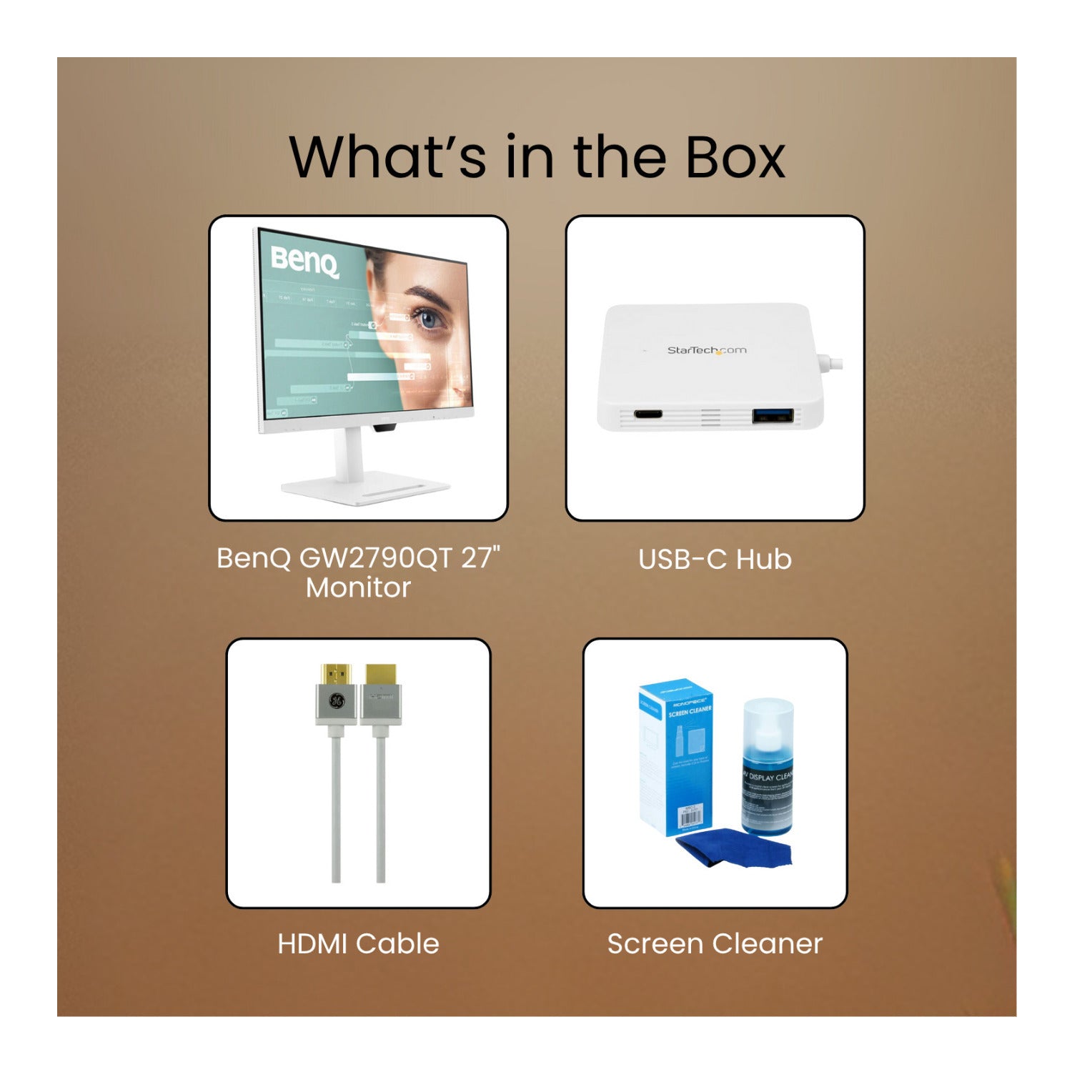 BenQ GW2790QT 27-Inch 2K QHD Monitor 75Hz (White) with Screen Cleaner HDMI Cable and USB-C Hub