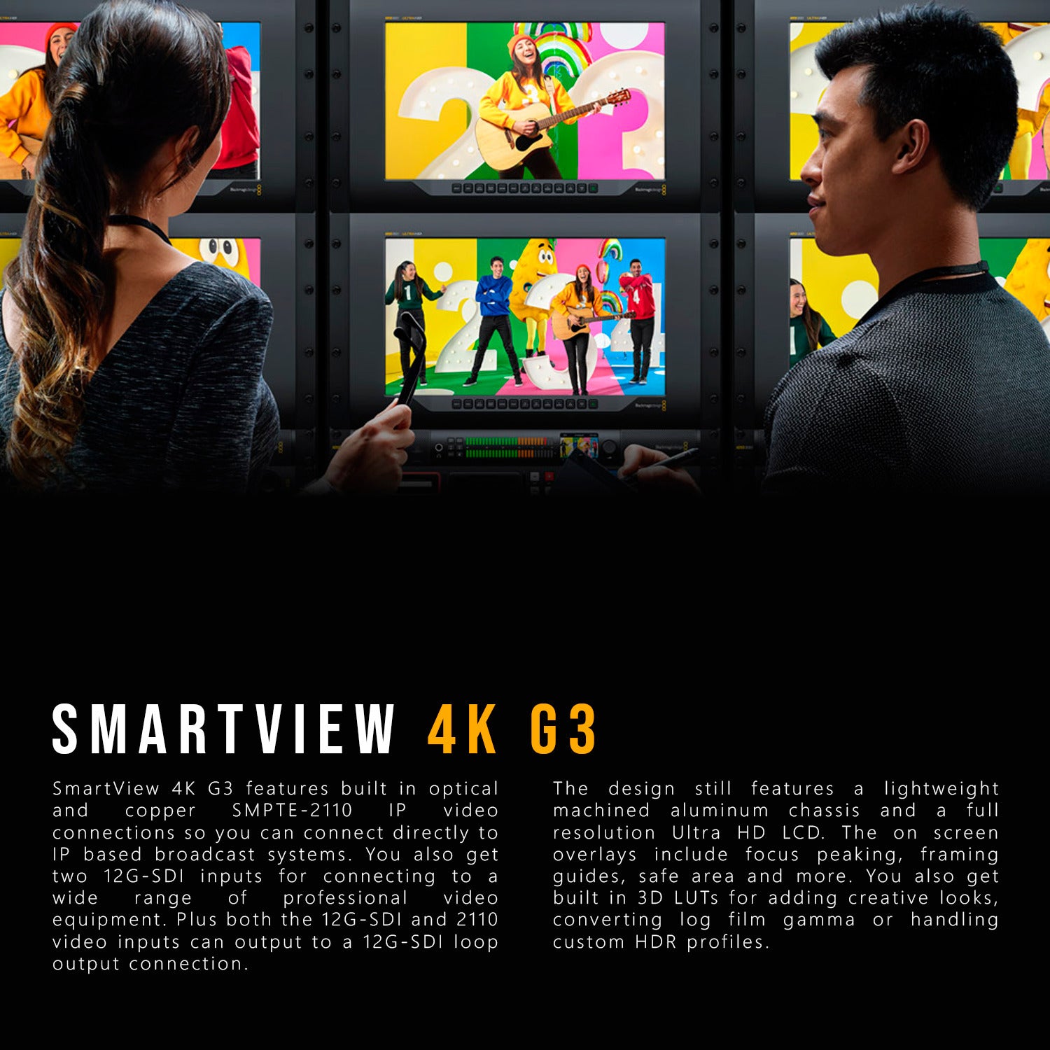 Blackmagic Design 15.6-Inch SmartView 4K G3 DCI Broadcast Monitor with SMPTE 2110 (Deep Black)