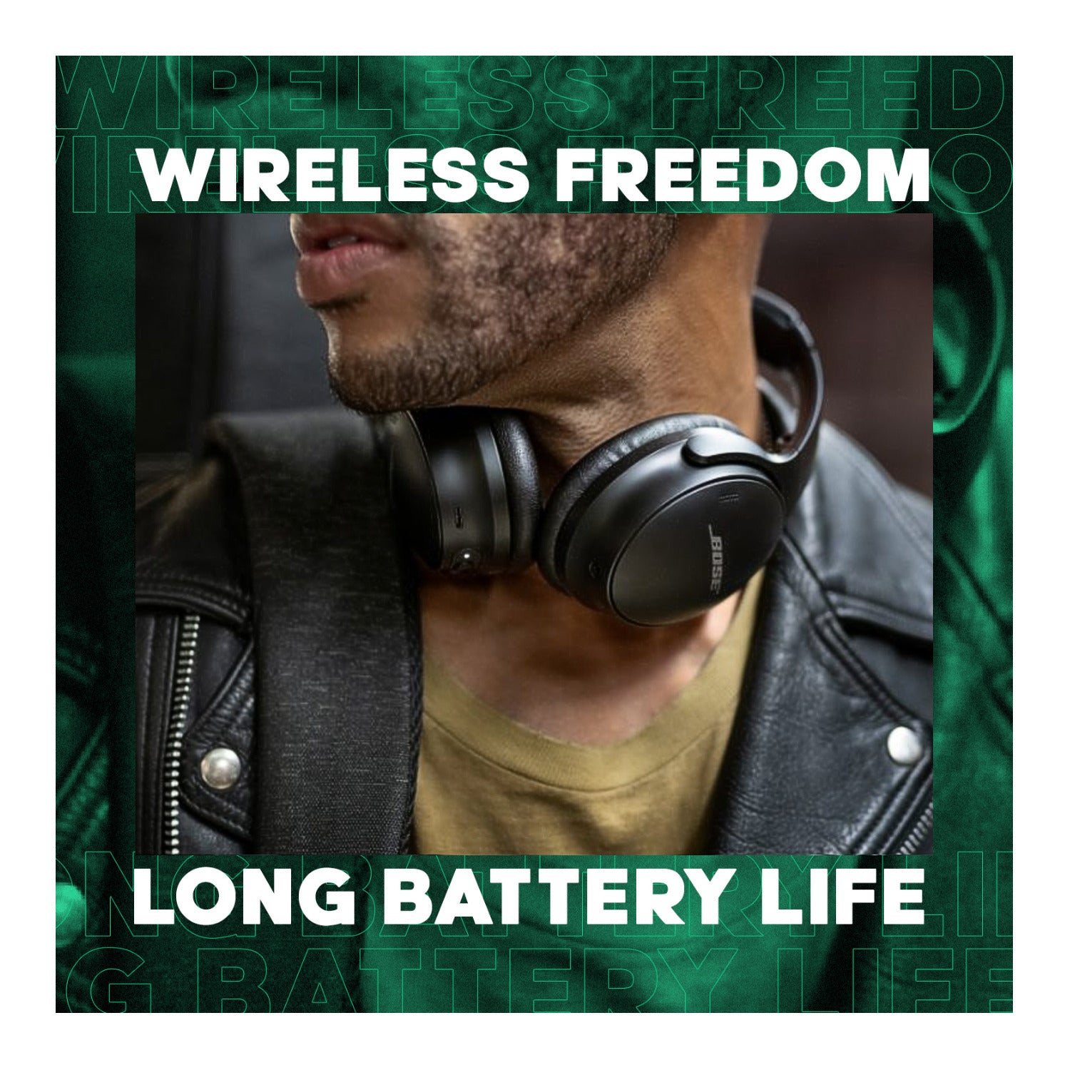Bose QuietComfort 45 Noise Canceling Bluetooth Headphones give you more playtime than their predecessor, with 24 hours on a single charge. Enough to keep the quiet and your music going throughout even the longest red-eye flight. And they charge via USB-C for up to 2.5 hours. A quick, 15-minute charge gives you up to 3 hours of playtime. Or plug in the included audio cable to listen for even longer in wired mode.