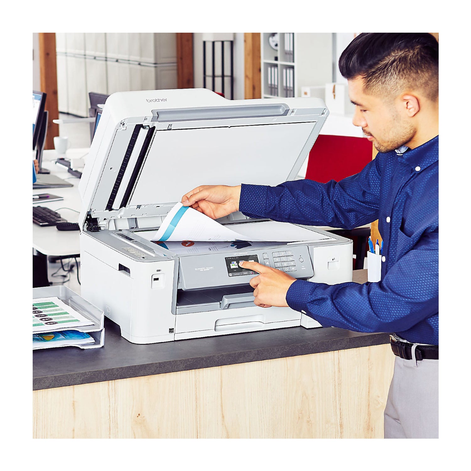Up to 50-sheet automatic document feeder helps save time with multi-page copy, scan and fax. Fast print speeds help get jobs done quickly.
