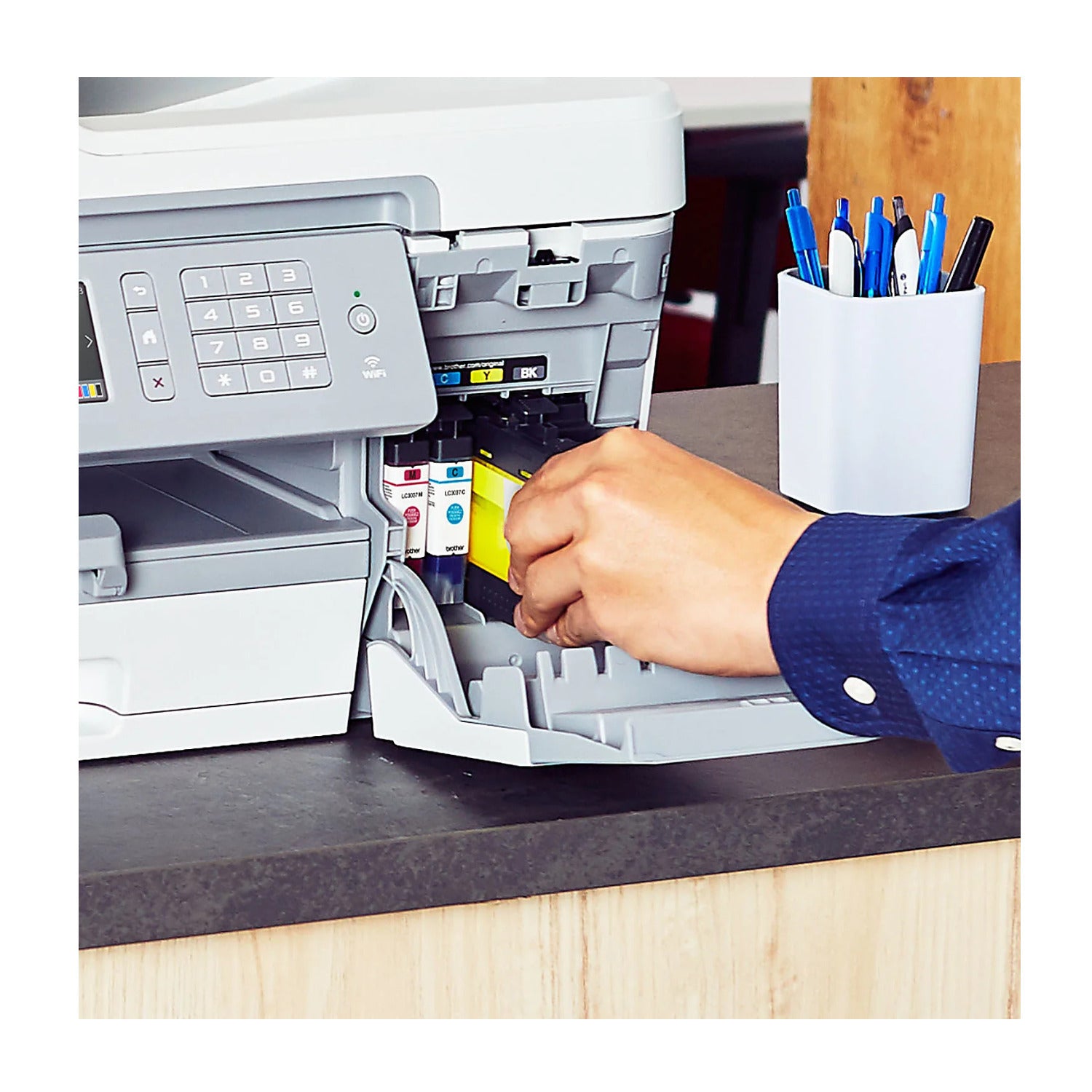 Brother reengineered its ink cartridges to hold more ink and created an internal ink reservoir delivering more pages of uninterrupted printing.