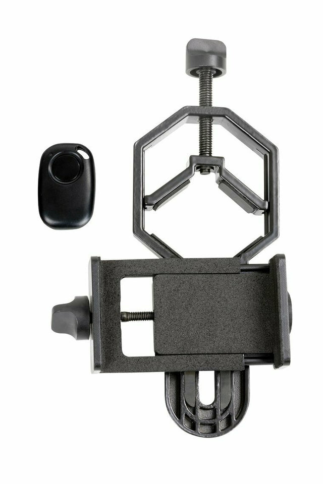 The Smartphone Adapter DX Kit is a great first step into the world of astroimaging or digiscoping. You get everything you need to capture sharp, detailed images and video: the smartphone adapter and a Bluetooth shutter release remote. Snap an Instagram-worthy image of the Moon, share your latest wildlife sightings with a binocular or spotting scope, or preserve lab specimens from your microscope—this versatile adapter handles it all with ease. The Smartphone Adapter fits any eyepiece from 29mm to 45mm in diameter, including telescopes equipped with 1.25-inch eyepieces, spotting scopes, monoculars, and binoculars.