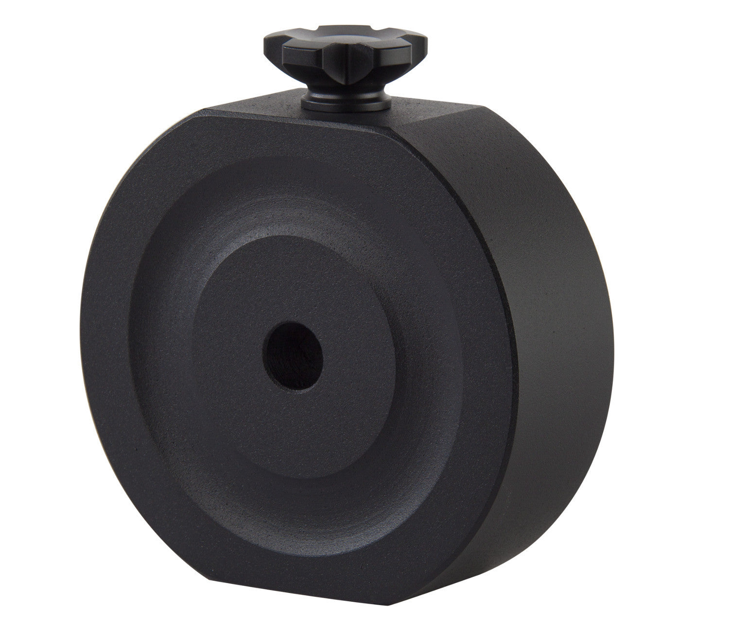 This counterweight comes with a sturdy knurled knob locks to safely hold in place on the counterweight shaft. The counterweight is designed to fit 19mm counterweight shafts.