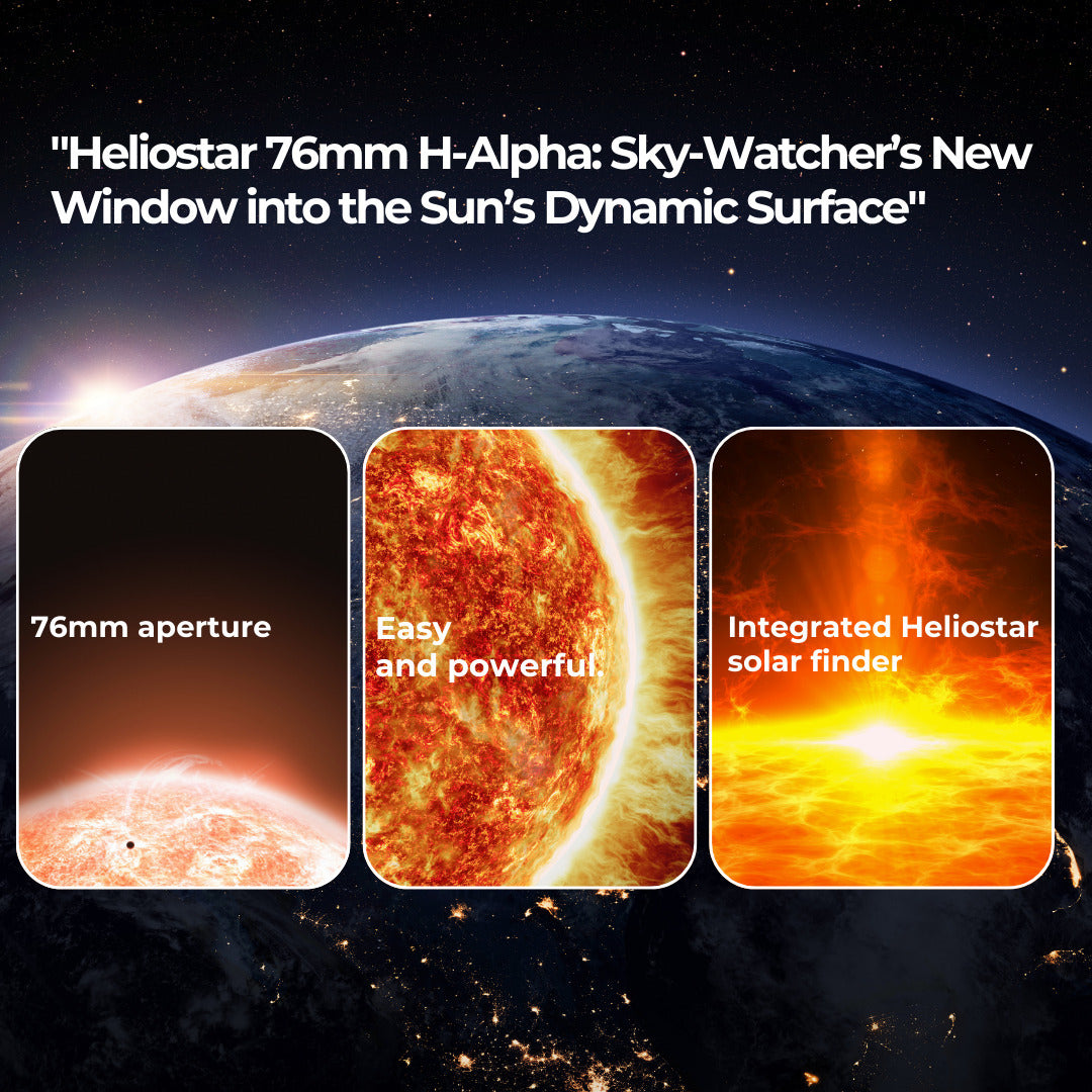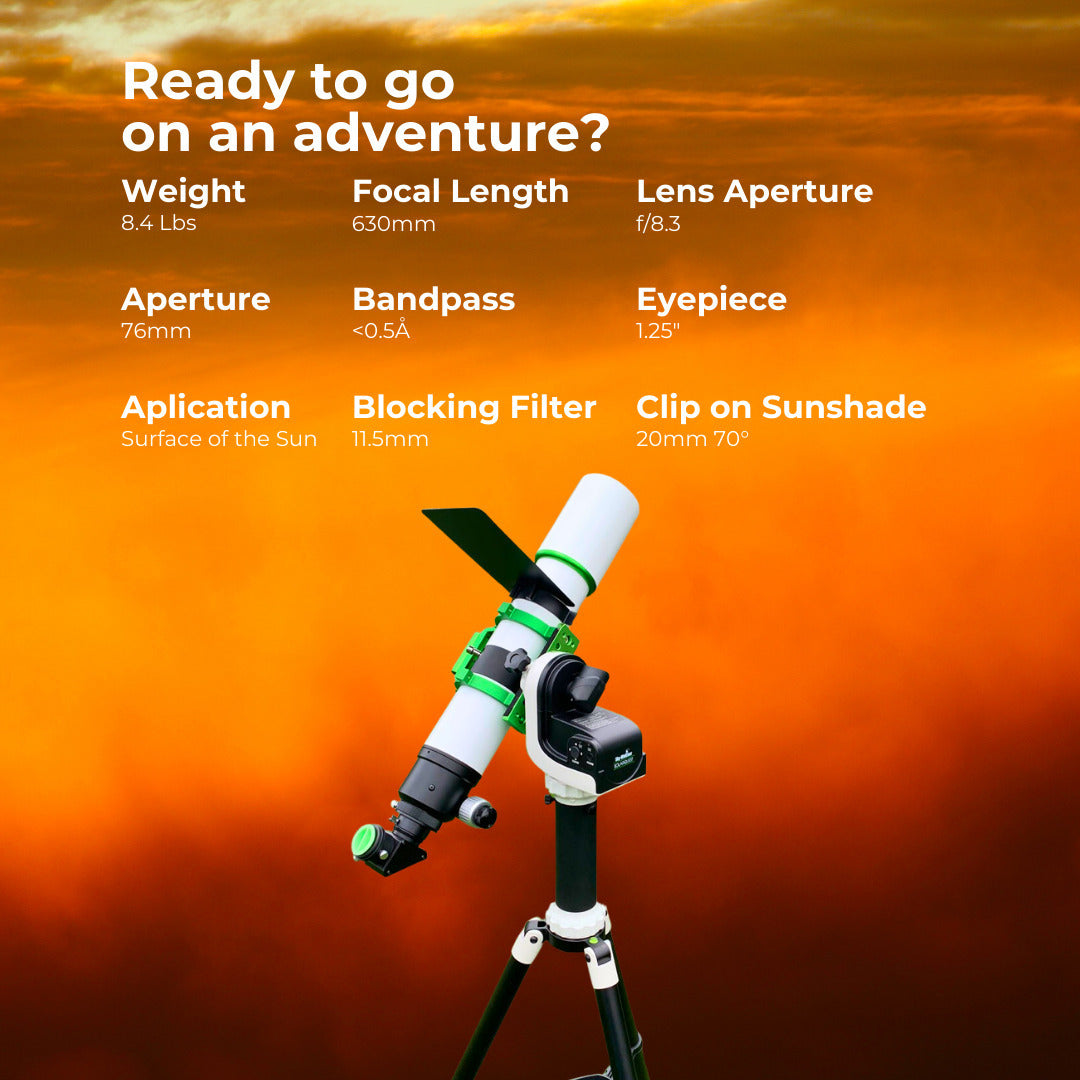 Dive into the fascinating world of solar observation with the Celestron Heliostar 76 H-Alpha Telescope. This cutting-edge telescope is designed to bring the wonders of the sun closer to you. Whether you're just starting your astronomical journey or you're an experienced observer, the Heliostar 76 provides the tools you need for detailed and safe solar viewing.