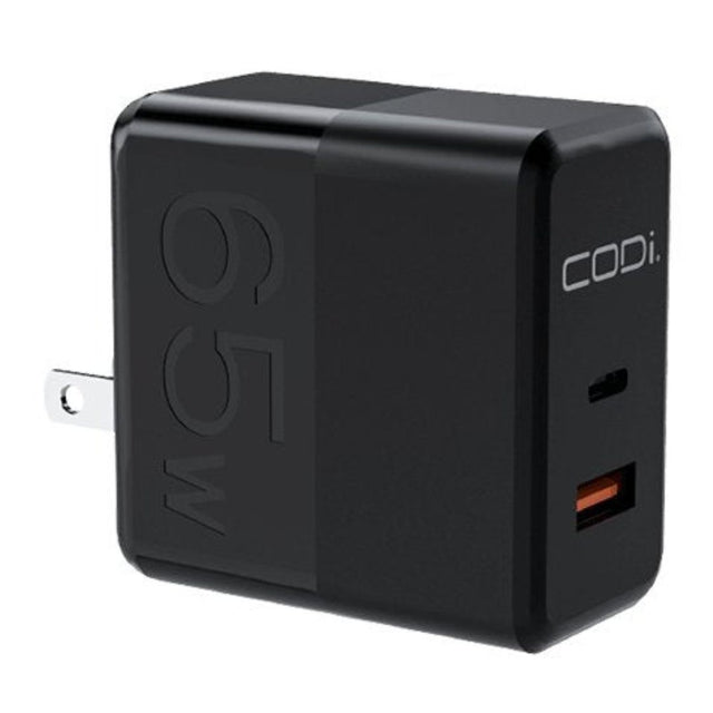 CODi 65W GaN Dual Port Wall Charger with USB-C and USB-A Quick Charge 3.0 Outputs (Black)