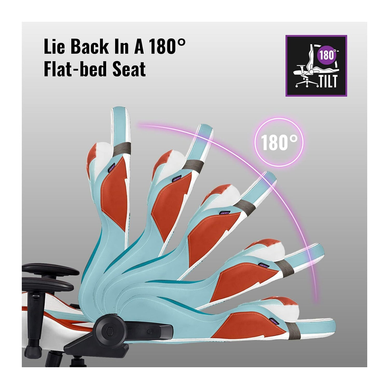 Caliber R2S is equipped with an adjustable seat and 2D soft armrests that can be adjusted in height and rotation angle. Whether you’re gaming or working, you can find the most suitable sitting position. Besides, with the tilt tension mechanism, the backrest can be reclined from 90 to 180-degree to meet all your needs (90-degree for work, 120-degree for reading, and 180-degree for napping).
