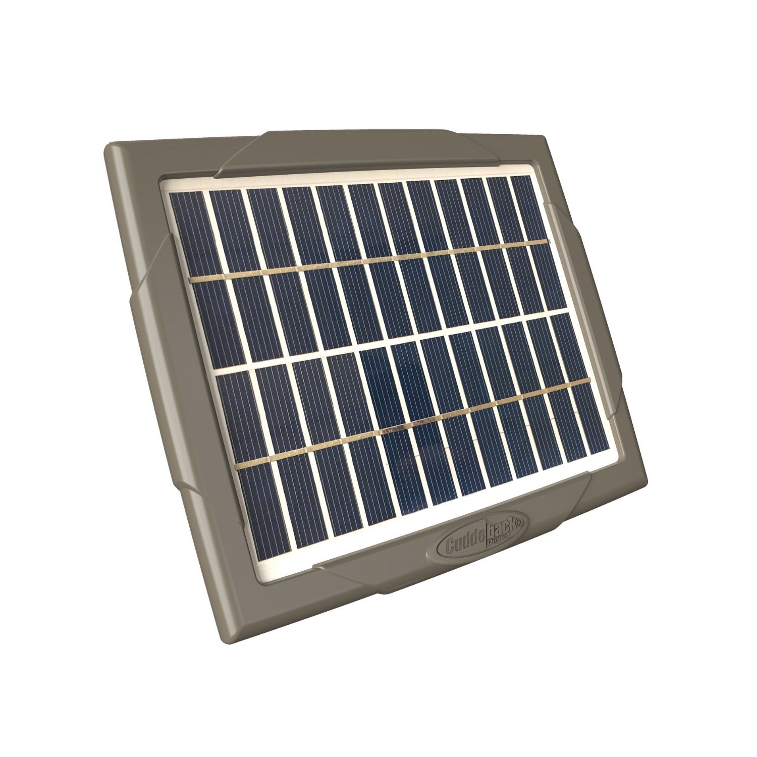 Solar Power Bank has everything you need to get your CuddeLink camera running on Solar power. It helps to extend battery life on your G, J and K CuddeLink cameras. Best performance when panel gets direct sunlight for most of the day. Recommended use on food plot and field edges. Built in 7.2 volt NiMH battery will power CuddeLink G, J and K series cameras. Has 2 output ports - 1 with battery output to power a camera, 2nd port is direct from solar panel to charge Dual Power Bank.