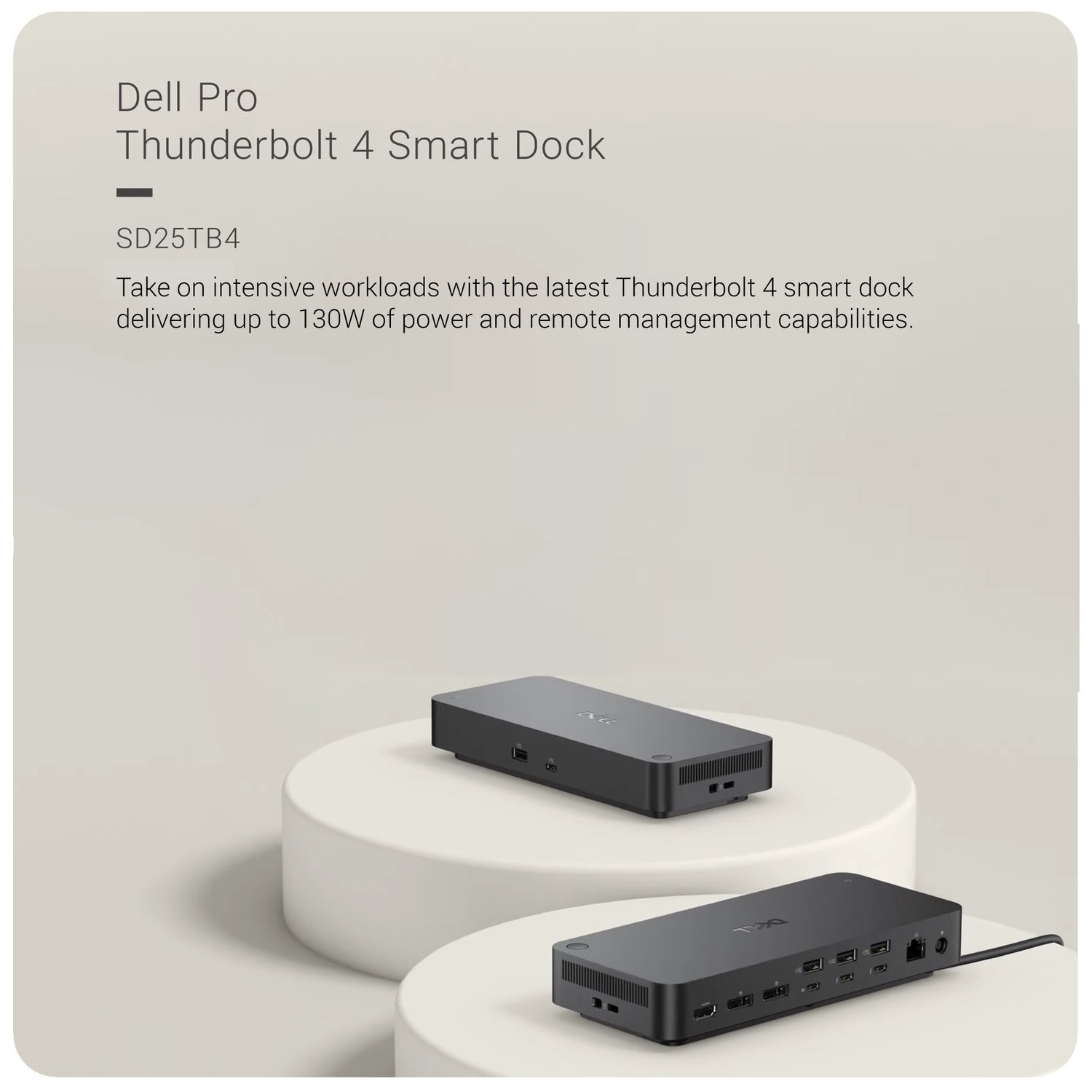 The Dell Pro Thunderbolt 4 Smart Dock SD25TB4 is built to meet the demands of AI-powered workflows. Seamlessly run generative AI tools across up to four 4K 60Hz displays while staying charged with up to 130W of power delivery. Whether you’re at your desk or in a hybrid setup, this smart dock ensures you can connect all your essential peripherals with ease.