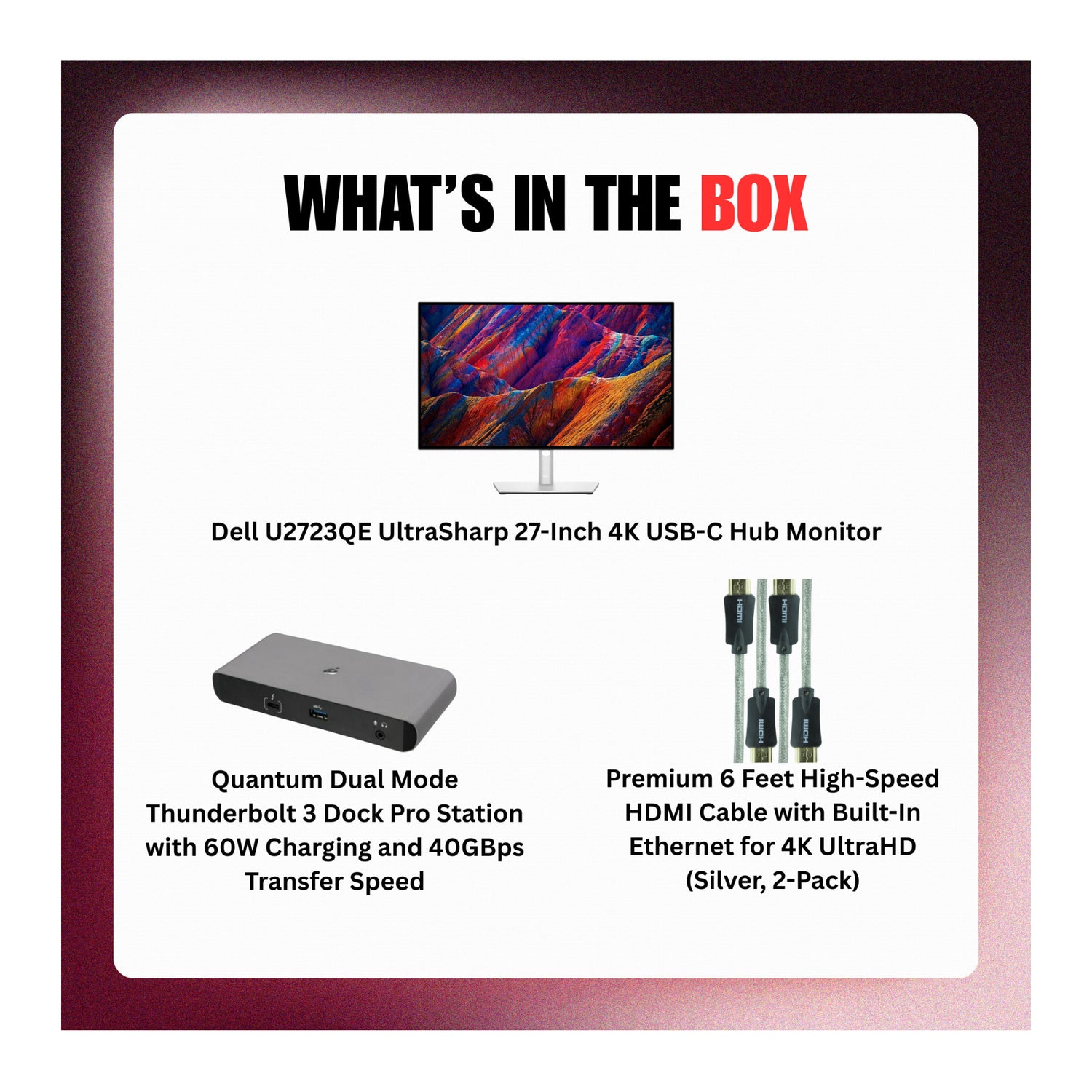 Dell U2723QE 27-Inch Monitor with Docking Station and HDMI Cable (3 Items)
