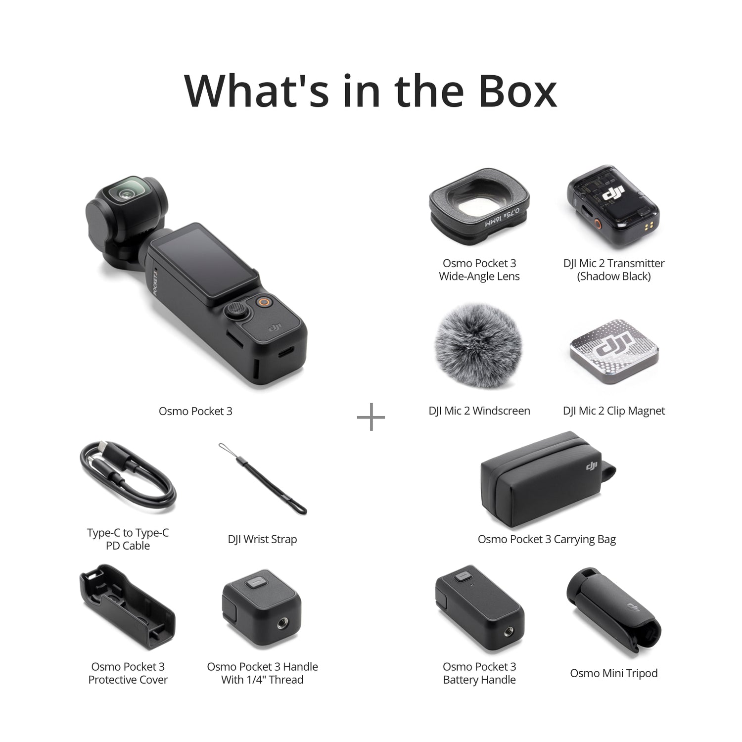 The all-new Pocket 3 features a powerful 1-inch CMOS sensor that puts detail-rich imaging right in the palm of your hand. With a 2-inch rotatable touchscreen and full-pixel fast focusing, go horizontal or vertical for more precise awareness and control. 4K/120fps, three-axis mechanical stabilization, and a host of intelligent features make Pocket 3 ready. Create whenever or wherever inspiration strikes with a DJI Mic 2 Transmitter (Shadow Black), battery handle, mini tripod, carrying bag, and more.