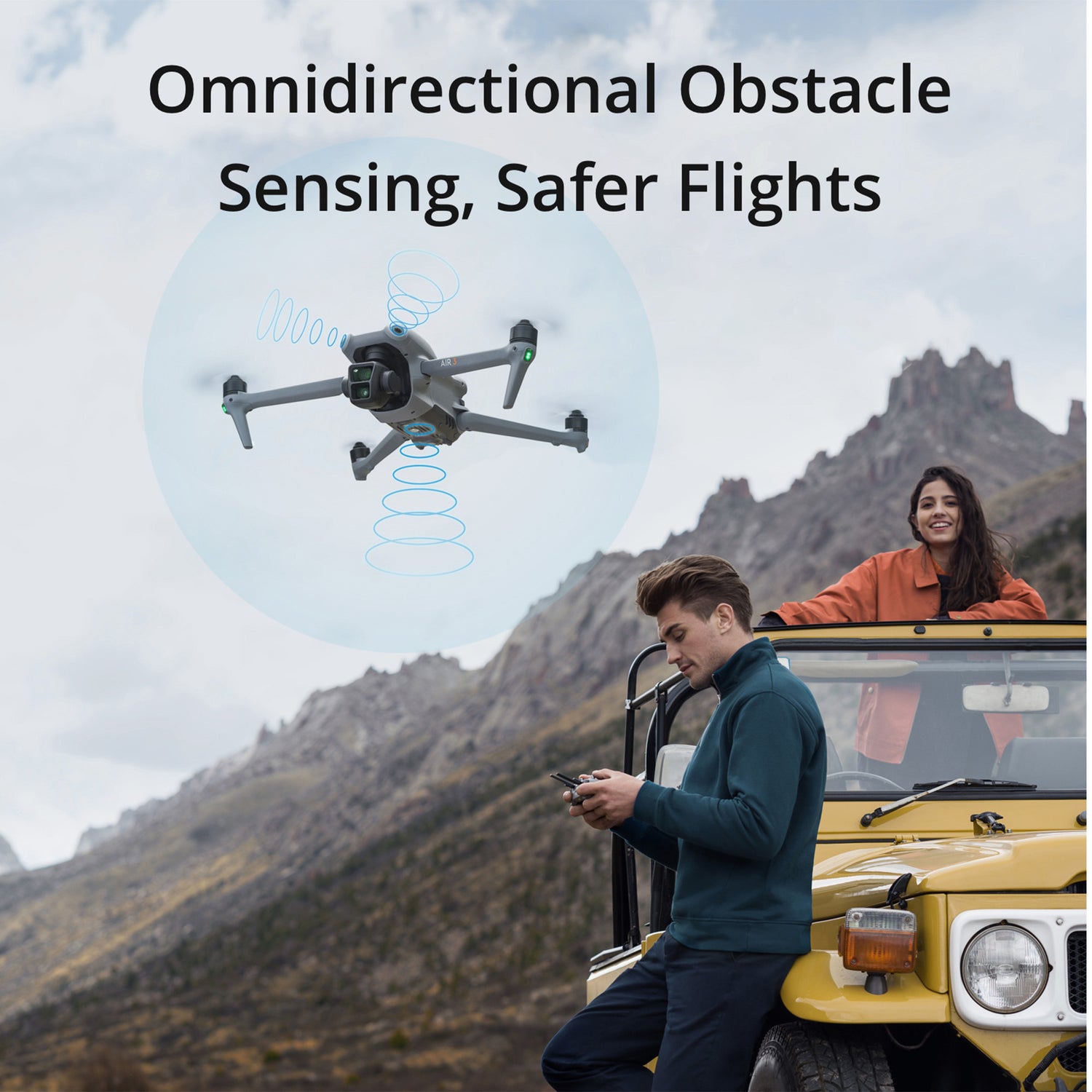 An omnidirectional sensing system enables comprehensive environmental awareness, allowing Air 3 to detect obstacles in all directions. When obstacles are detected, Air 3 can use APAS 5.0 to perform smoother avoidance movements for a safer overall flight experience. Even complete beginners can now fly with confidence and execute creative ideas with enhanced safety.