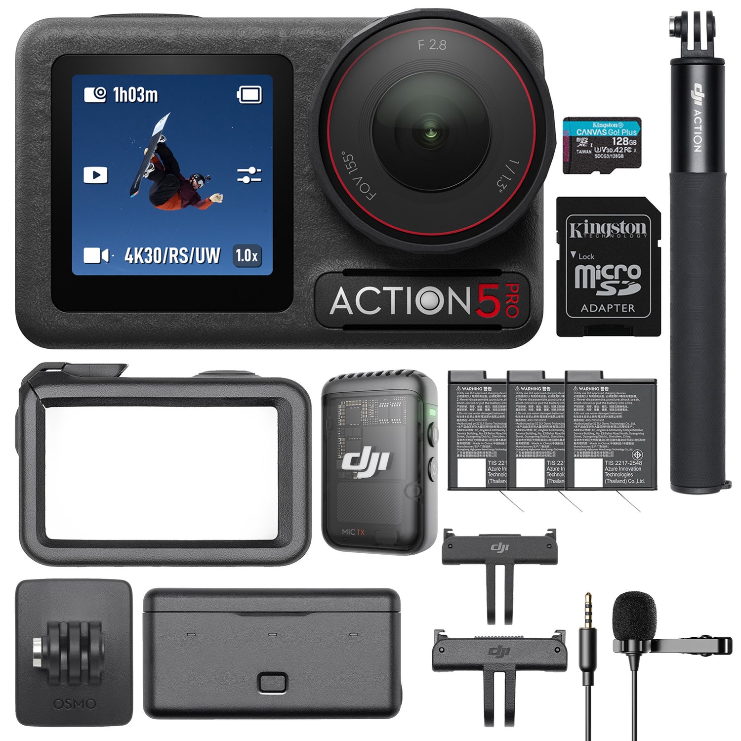 DJI Osmo Action 5 Pro Adventure Combo with DJI Mic 2 Transmitter and 128GB MicroSD Card Bundle