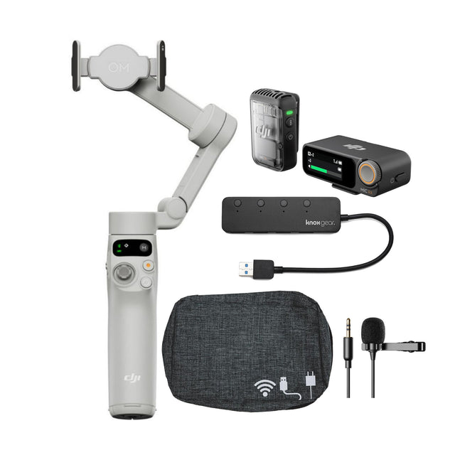 DJI Osmo Mobile 7 Gimbal Bundle with DJI Mic 2 (1 TX + 1 RX), Travel Case, Lavalier Mic and USB Hub