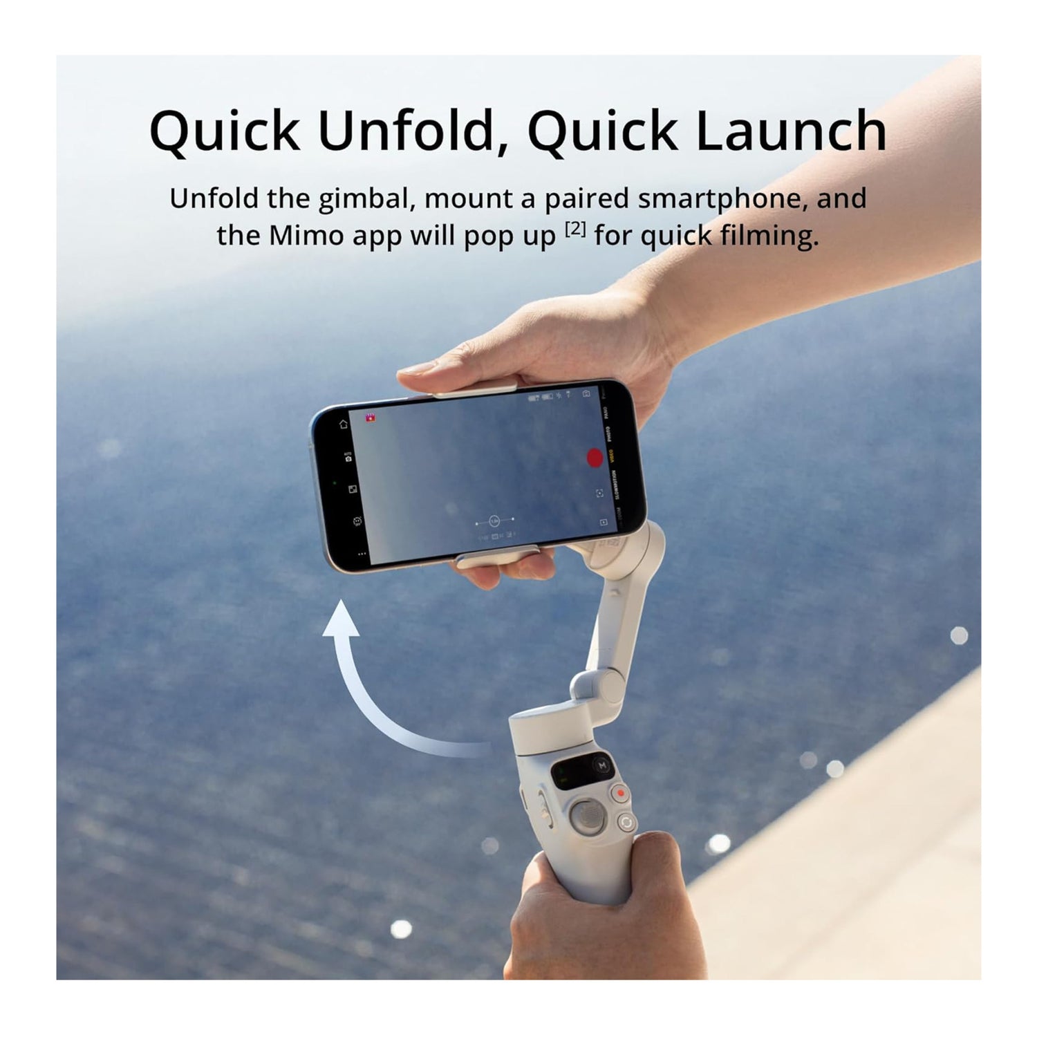Unfold the gimbal to power it on. Easily mount a paired phone with the magnetic design, and DJI Mimo pops up automatically for quick filming.