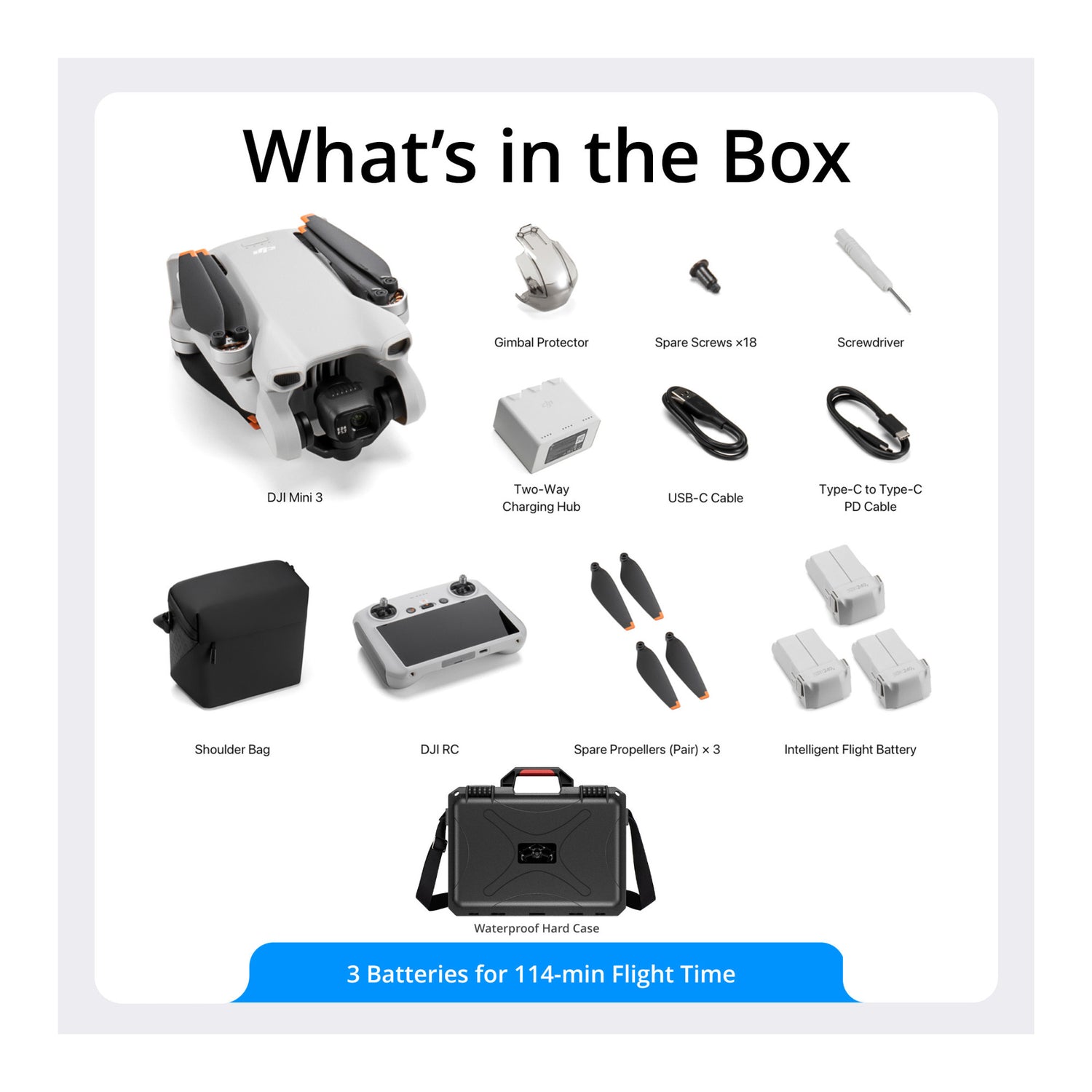 DJI Mini 3 Camera Drone with DJI RC Remote Controller (Fly More Combo) with Waterproof Hard Case bundle