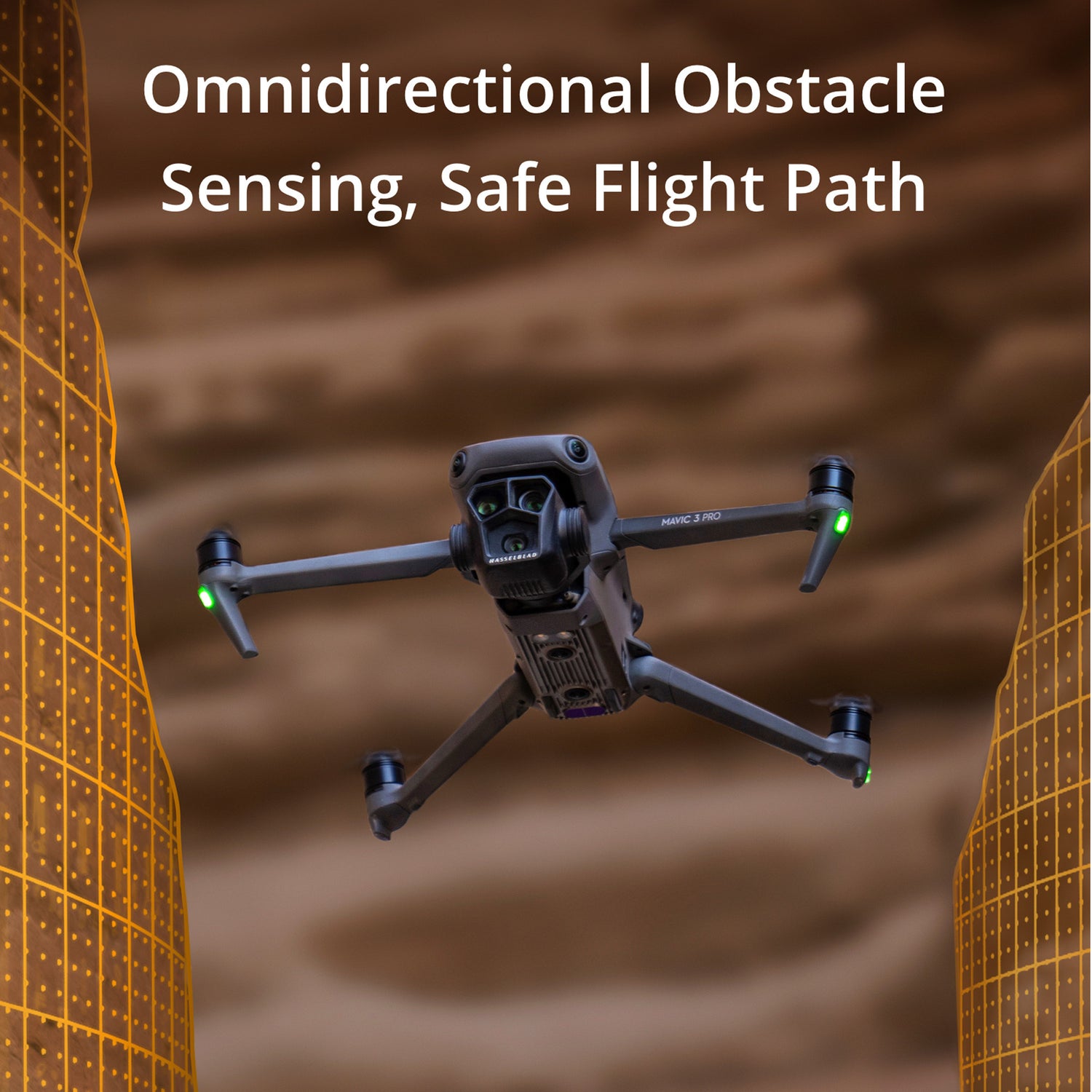 Mavic 3 Pro ensures you fly safely and create with peace of mind. Eight wide-angle vision sensors work seamlessly with a high-performance vision computing engine to precisely sense obstacles in all directions and plan a safe flight route to avoid them.