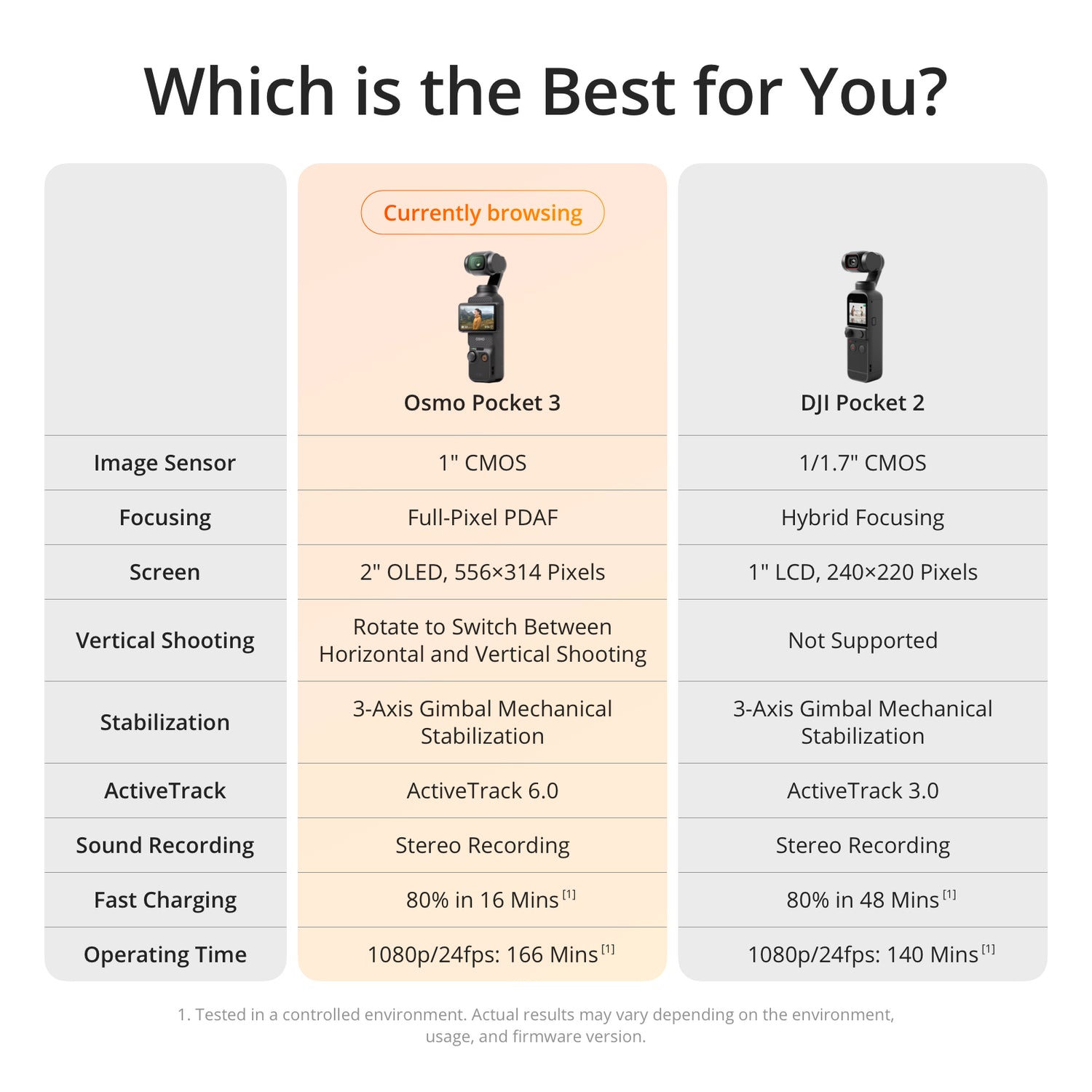 Compact and flexible, Pocket 3 fits easily in your palm or pocket, ensuring you’ll stay ready for the moments worth recording.Fast Charging, Long Lasting
