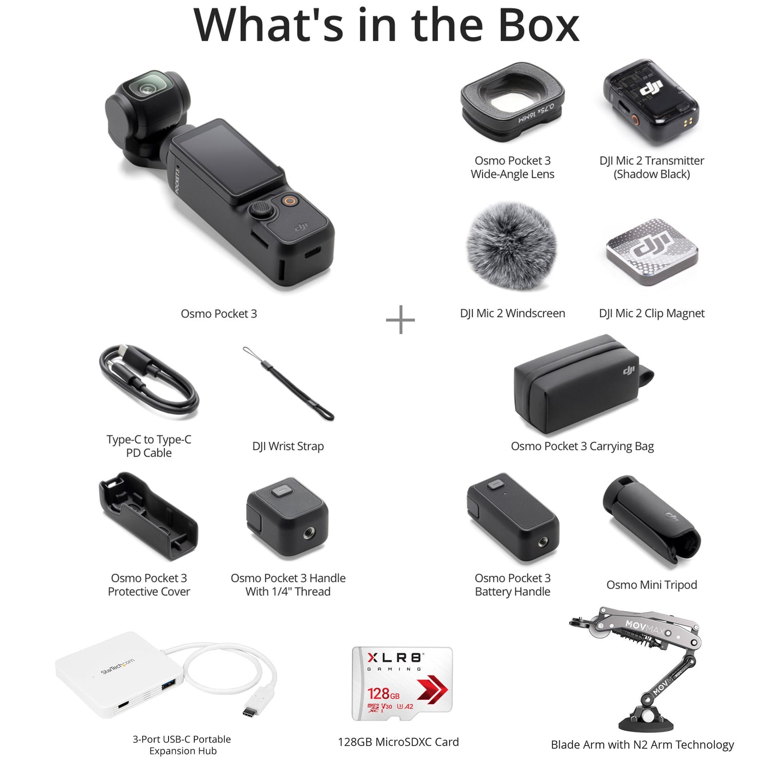 DJI Osmo Pocket 3 Creator Combo with Blade Arm for DJI Pocket 3 and Insta 360 Cameras Bundle