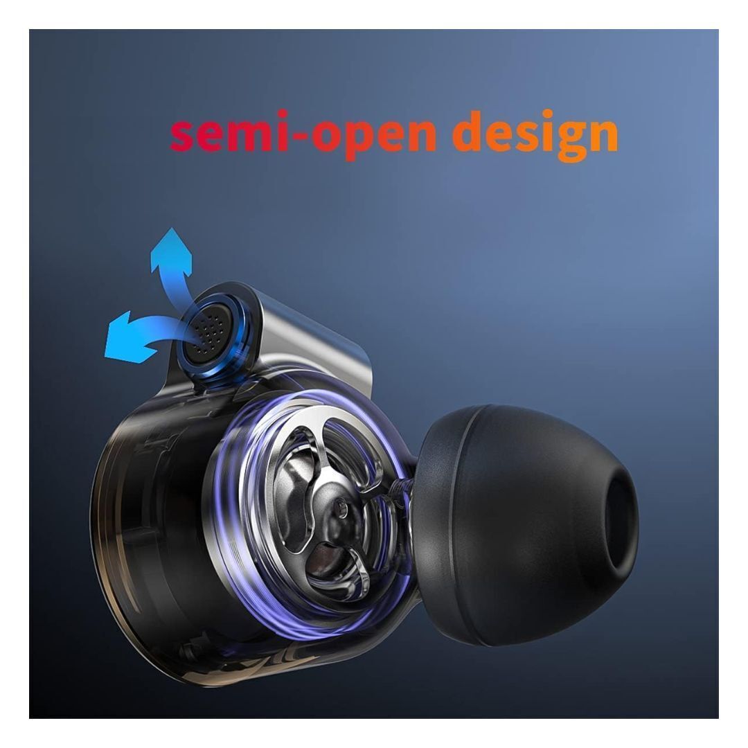| Semi-open acoustic structure for balanced, low-fatigue listening. | |