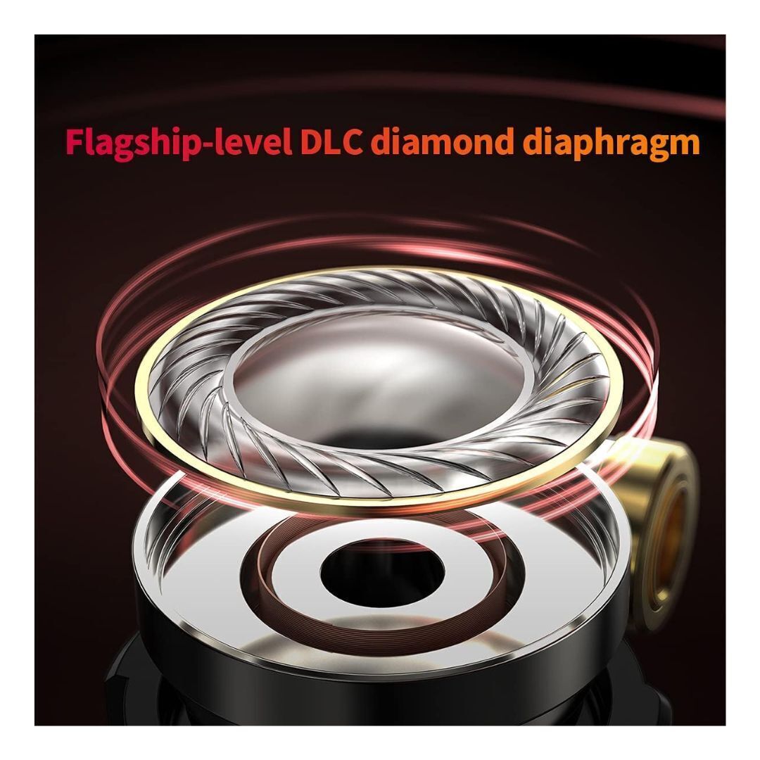 dynamic driver. The diaphragm is made of Diamond-Like Carbon (DLC) which is