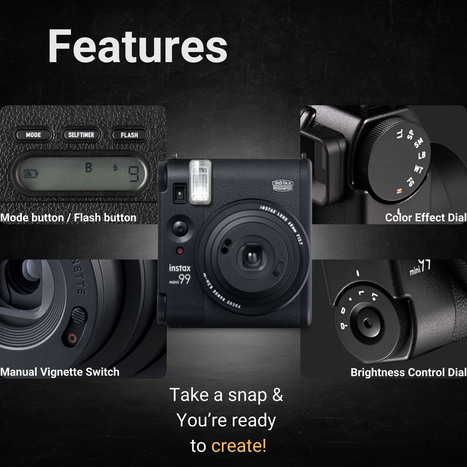 Fujifilm INSTAX MINI 99 Premium Analog Instant Camera with 5 Shooting Modes (Black)