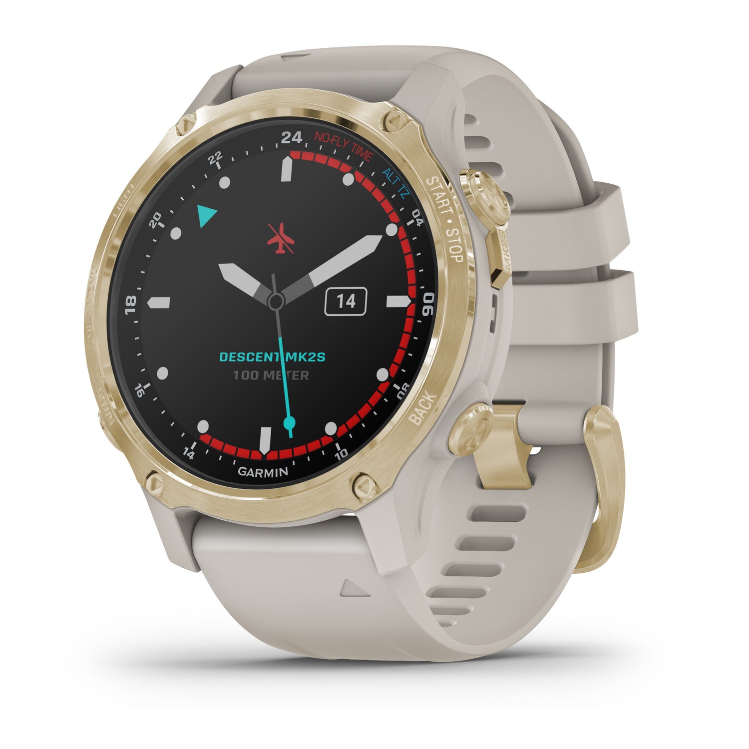 Descent Mk2S GPS Diving Smartwatch (43mm, Light Gold/Light Sand Silicone Band)