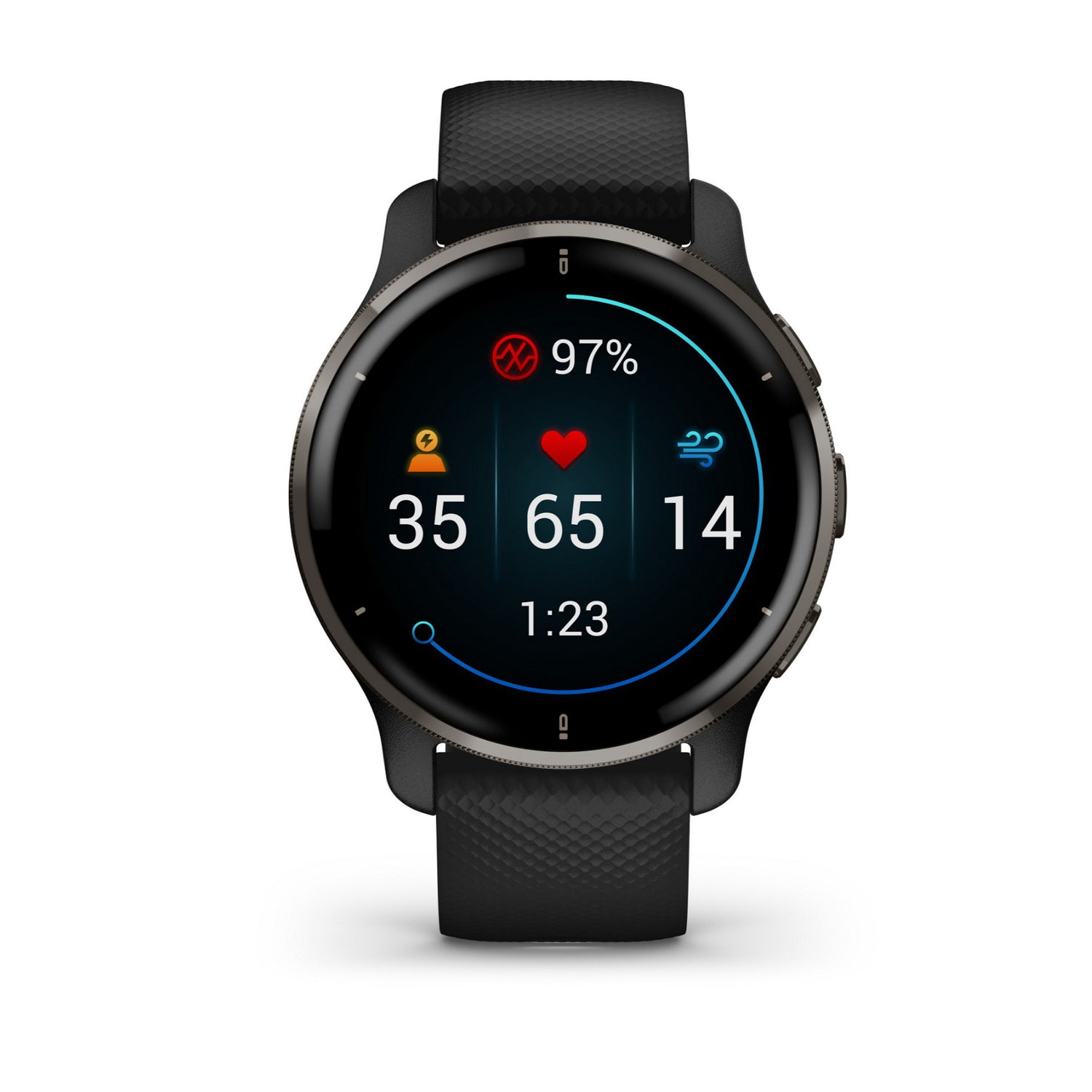 Use the Pulse Ox sensor to spot-check your blood oxygen saturation at any point during the day, or while you sleep, to show how well your body is absorbing oxygen.