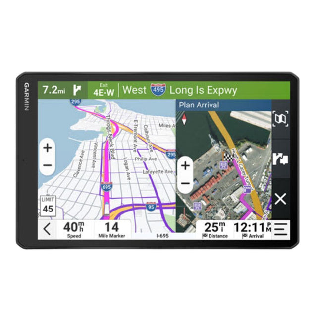 the road, the Garmin 10-Inch dezl OTR1020 GPS Truck Navigator in Black offers