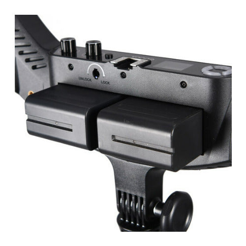 You can make color and light intensity adjustments from 10 to 100 percent with two knobs on the fixture. The LR160 runs on AC power via its included adapter, but it can also be powered by two optional NP-F970 lithium-ion batteries in locations where main power is unavailable.