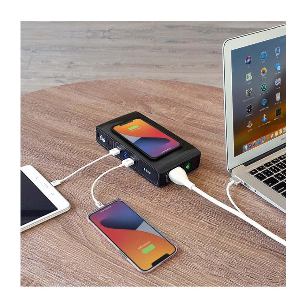 Two USB-A ports allow charging for multiple devices at once. Keep your tablet, phone, or headphones powered during trips or emergencies.