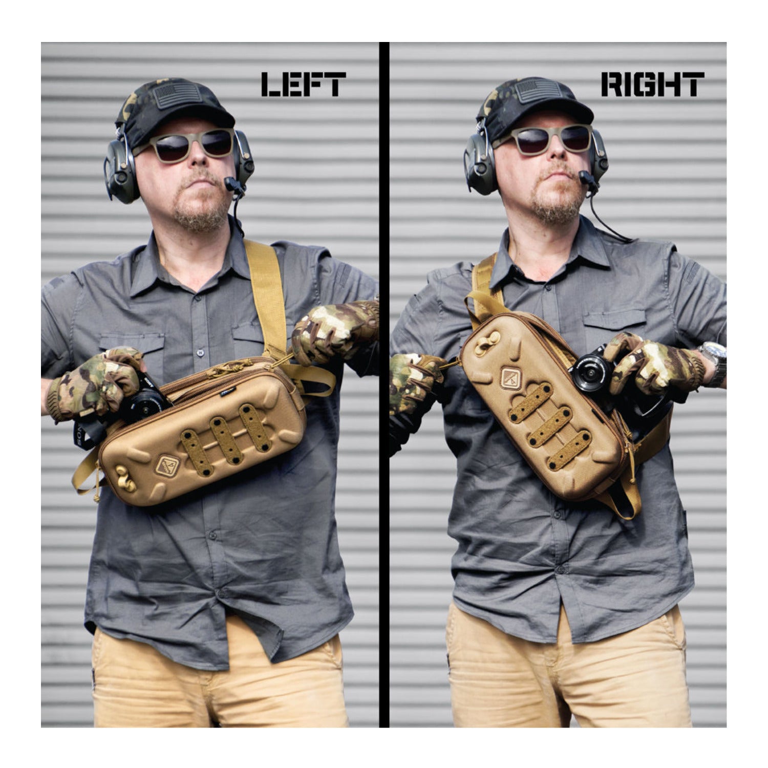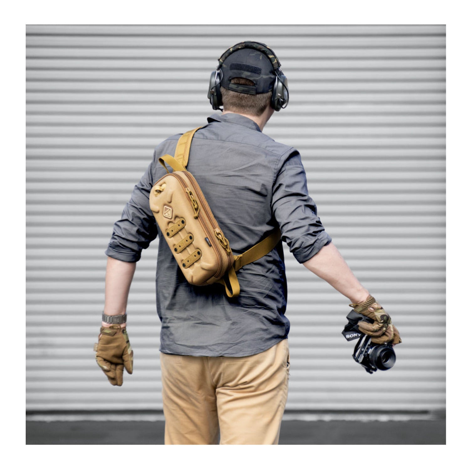 Hazard 4 Bandoleer Compact Hard Shell Sling Bag - Ambidextrous Camera Pack (Coyote)