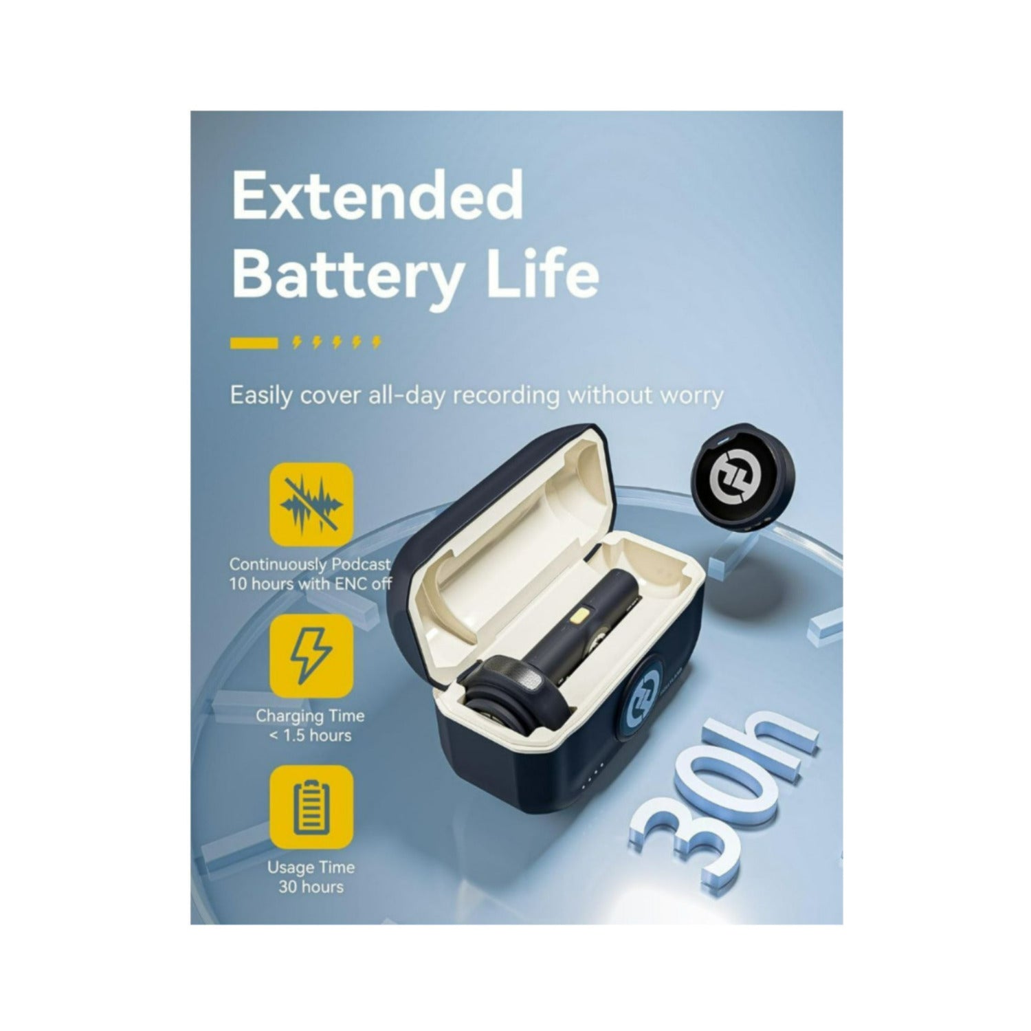 - 30-hour battery life with charging case