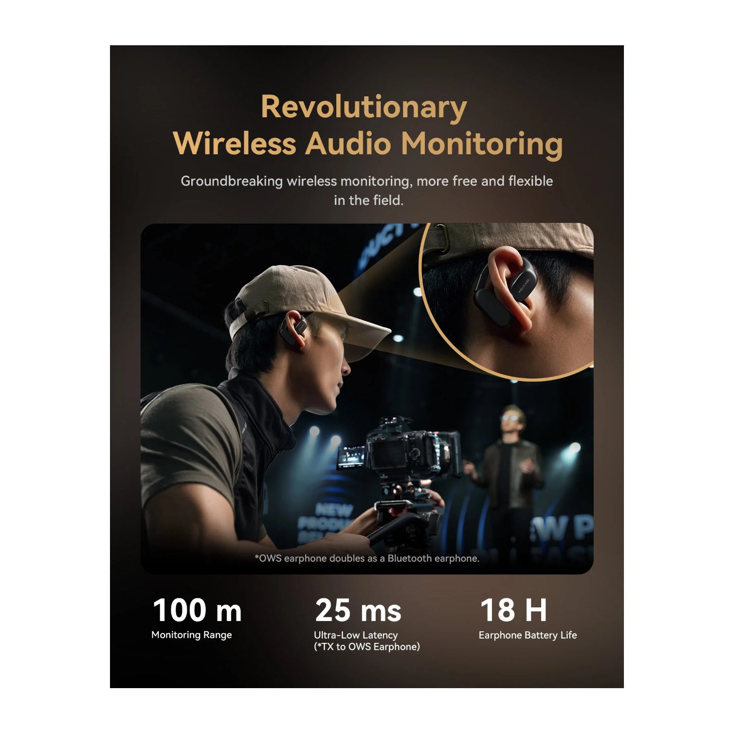 Experience the future of professional audio with our state-of-the-art wireless microphone system. This groundbreaking technology redefines what's possible in professional sound capture, offering advanced wireless monitoring that gives cameramen unprecedented freedom and flexibility in the field.