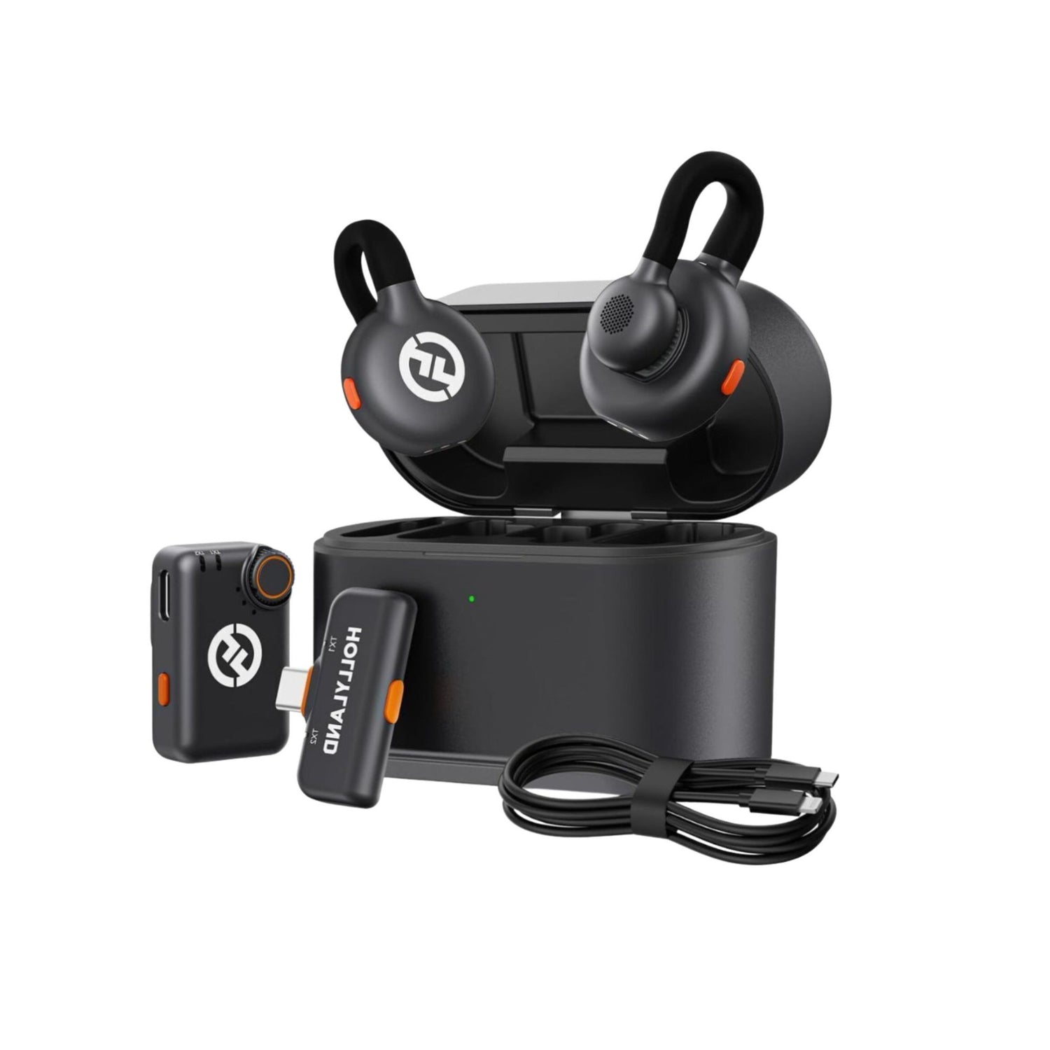 The Hollyland Lark M2S Wireless Combo Microphone System in Space Gray boasts a titanium clip-on design that offers remarkable structural integrity and endurance, ensuring your microphone stays securely attached, greatly improving comfort and user experience during high-energy activities such as sports, cycling, or running.