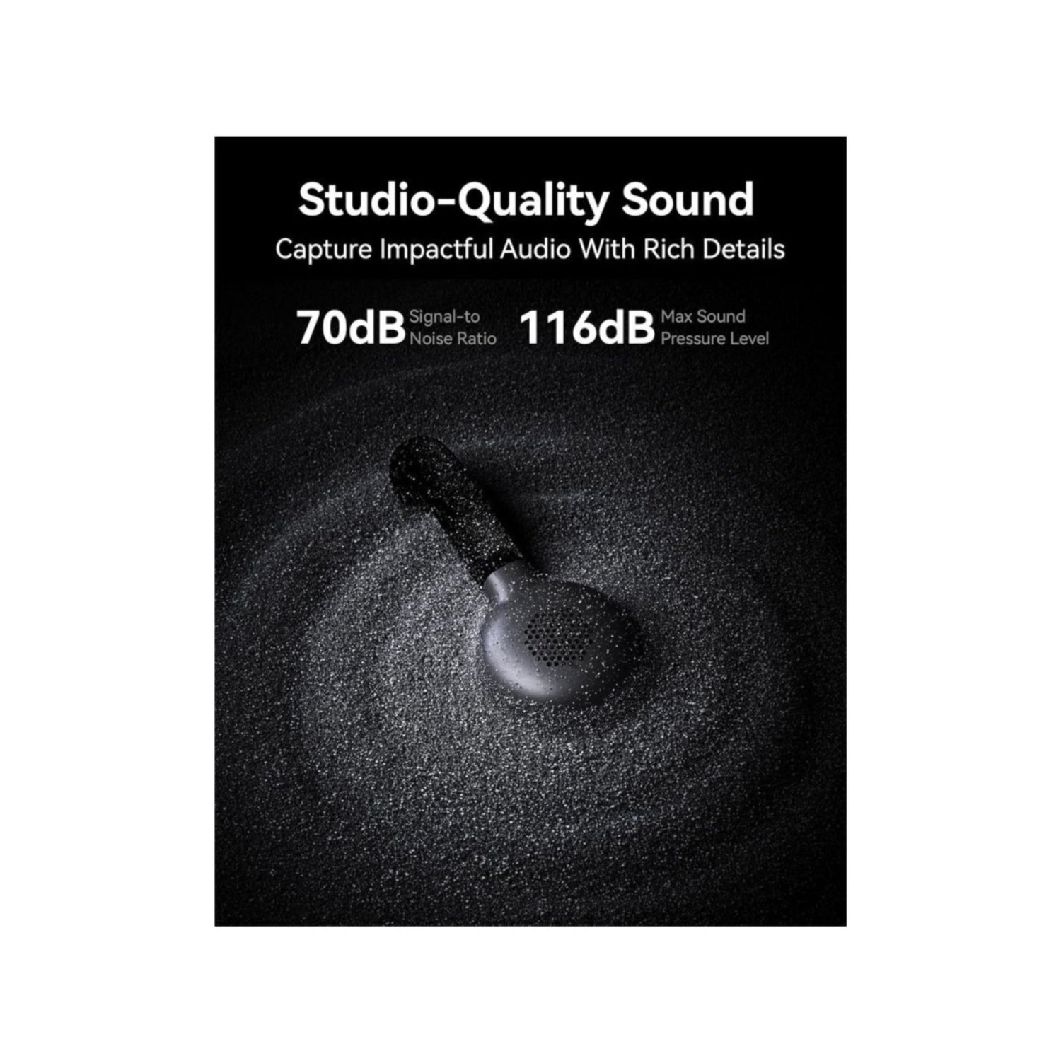 Experience rich audio details with a 24-bit/48kHz sampling rate for clear and natural sound. A 70dB signal-to-noise ratio reduces background noise, while the 116dB sound pressure level guarantees low distortion even with loud sources, allowing for effortless creation of professional, realistic recordings.