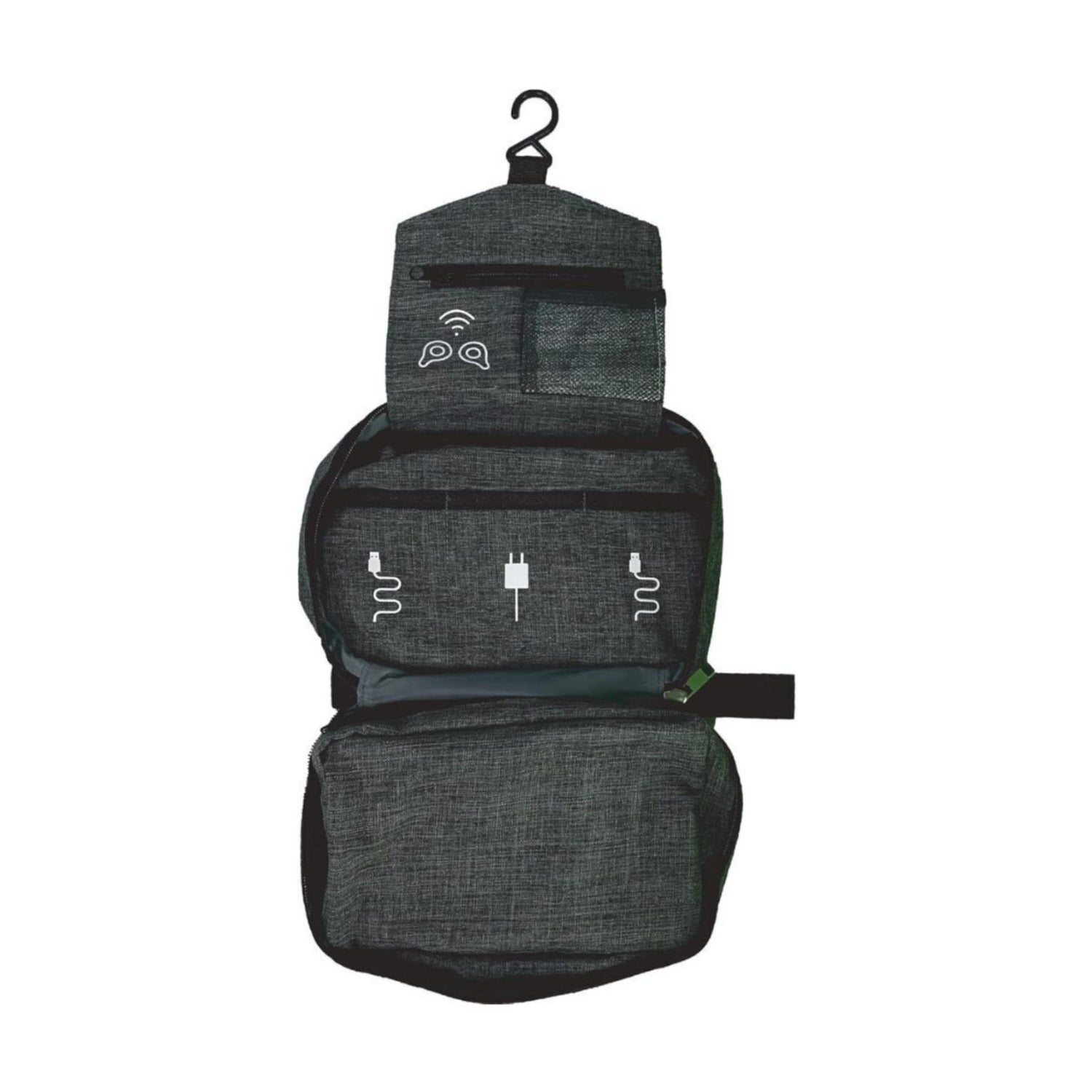 This compact, foldable travel case keeps accessories protected and organized. Designed for portability, it fits easily into luggage and includes a hook for hanging when open.