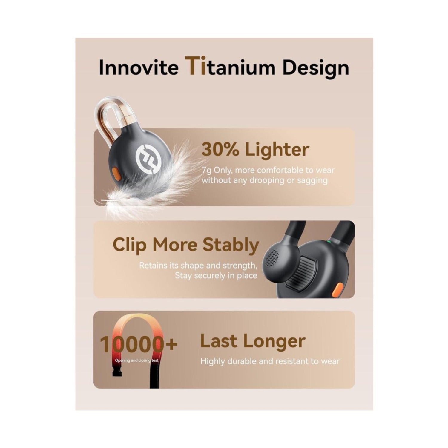 The titanium clip-on design ensures strong, secure attachment during movement-heavy activities like sports or running, enhancing comfort and stability.