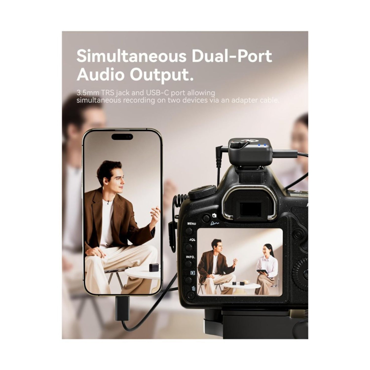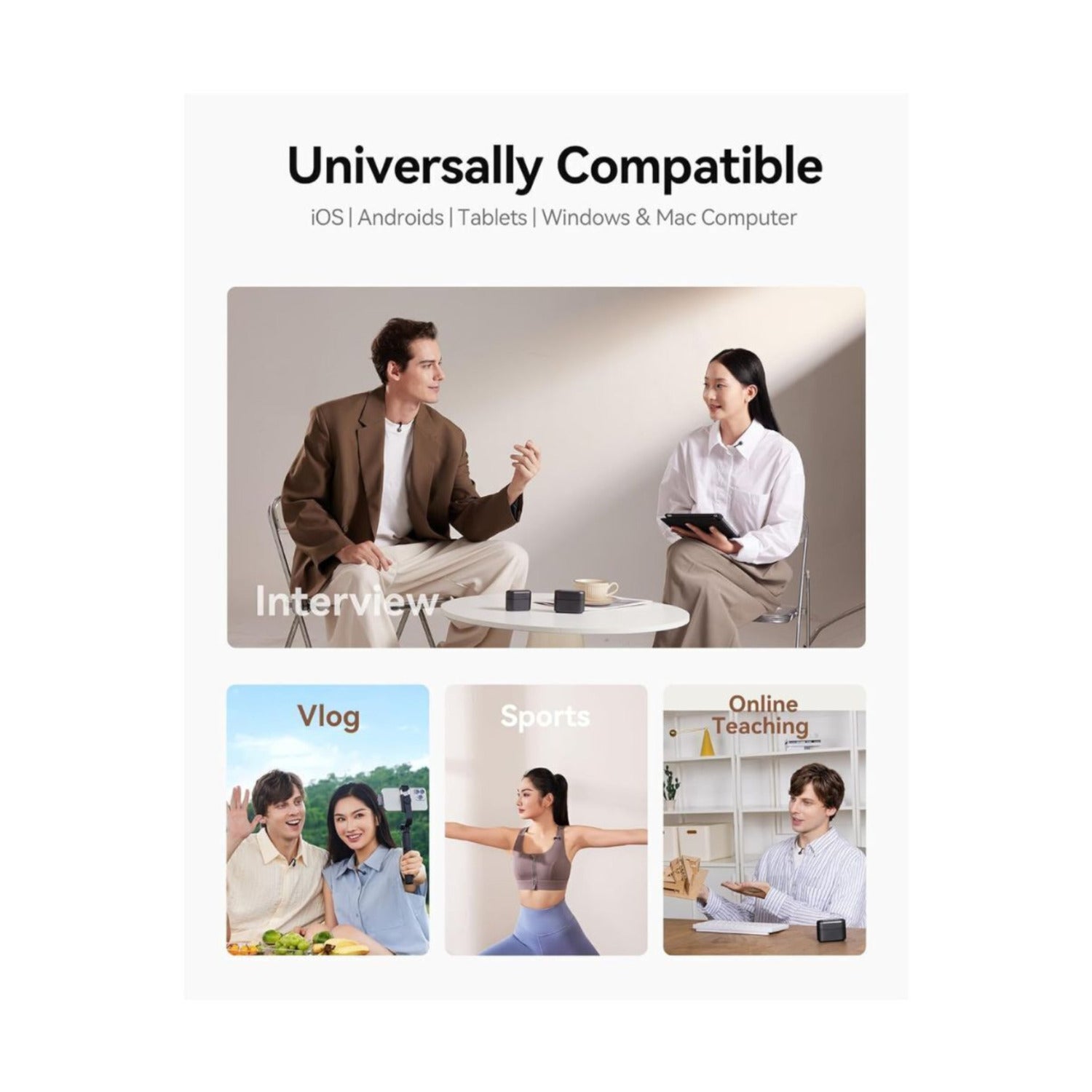 Works with cameras, iOS/Android phones, and Windows/Mac via USB-C and 3.5mm outputs. Enjoy seamless plug-and-play recording and instant playback, perfect for content creators on the go.
