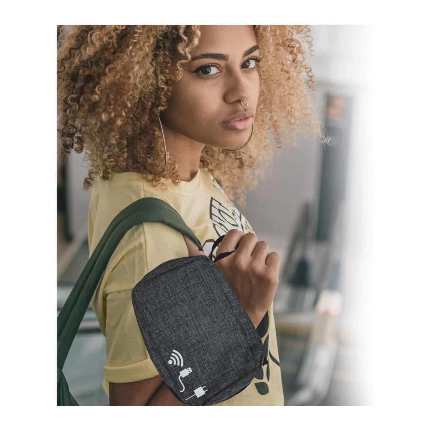 Includes two zippered pouches, three cable slots, a mesh pocket for earbuds, and a small zippered pocket for cards. A carabiner clip makes it easy to attach to bags or backpacks.