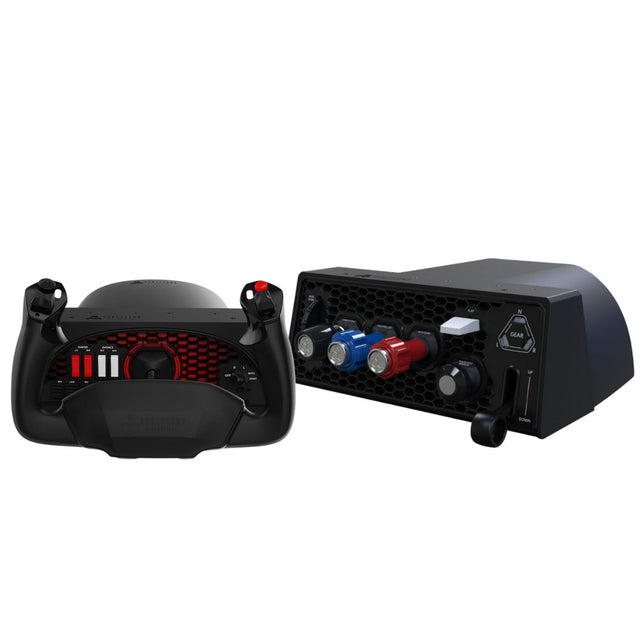 The Honeycomb Alpha Flight Controls Yoke & Switch Panel is the most advanced flight simulation system available to simmers, flight students and pilots. The yoke has a full 180-degree yoke rotation with smooth control and no dead zone. The base includes a Switch Panel with master, alternator, avionics and light switches as well as a 5-position ignition switch. The left and right handles feature 13 programmable buttons and switches for fully customizable flight. The Honeycomb Alpha Flight Controls Yoke & Switch Panel was designed and developed in California by pilots and aerospace engineers to ensure the most realistic flight simulation experience possible.