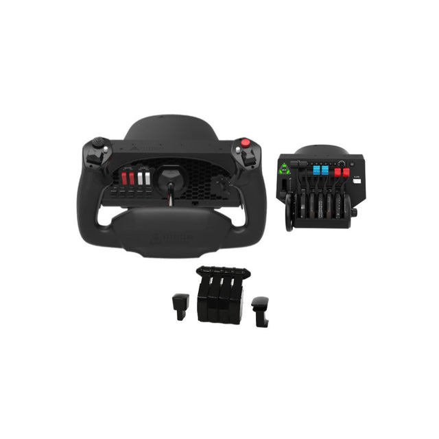 The Honeycomb Alpha Flight Controls Yoke and Switch Panel is the most advanced flight simulation system available to simmers, flight students, and pilots. The yoke has a full 180-degree yoke rotation with smooth control and no dead zone. The base includes a Switch Panel with master, alternator, avionics, and light switches as well as a 5-position ignition switch. The left and right handles feature 13 programmable buttons and switches for a fully customizable flight. The Honeycomb Alpha Flight Controls Yoke & Switch Panel was designed and developed in California by pilots and aerospace engineers to ensure the most realistic flight simulation experience possible.