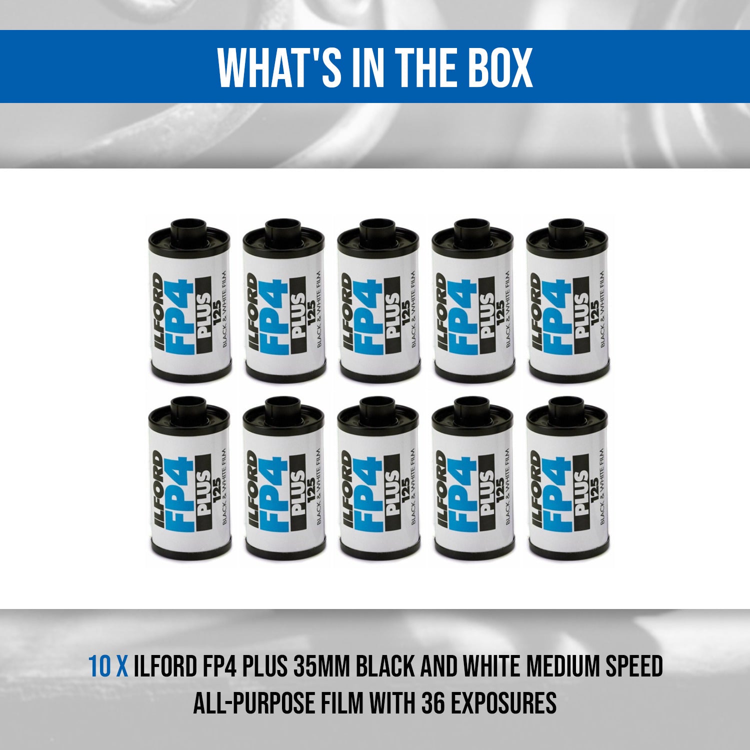 • 10 x Ilford FP4 Plus 35mm Black and White Medium Speed All-Purpose Film with 36 Exposures