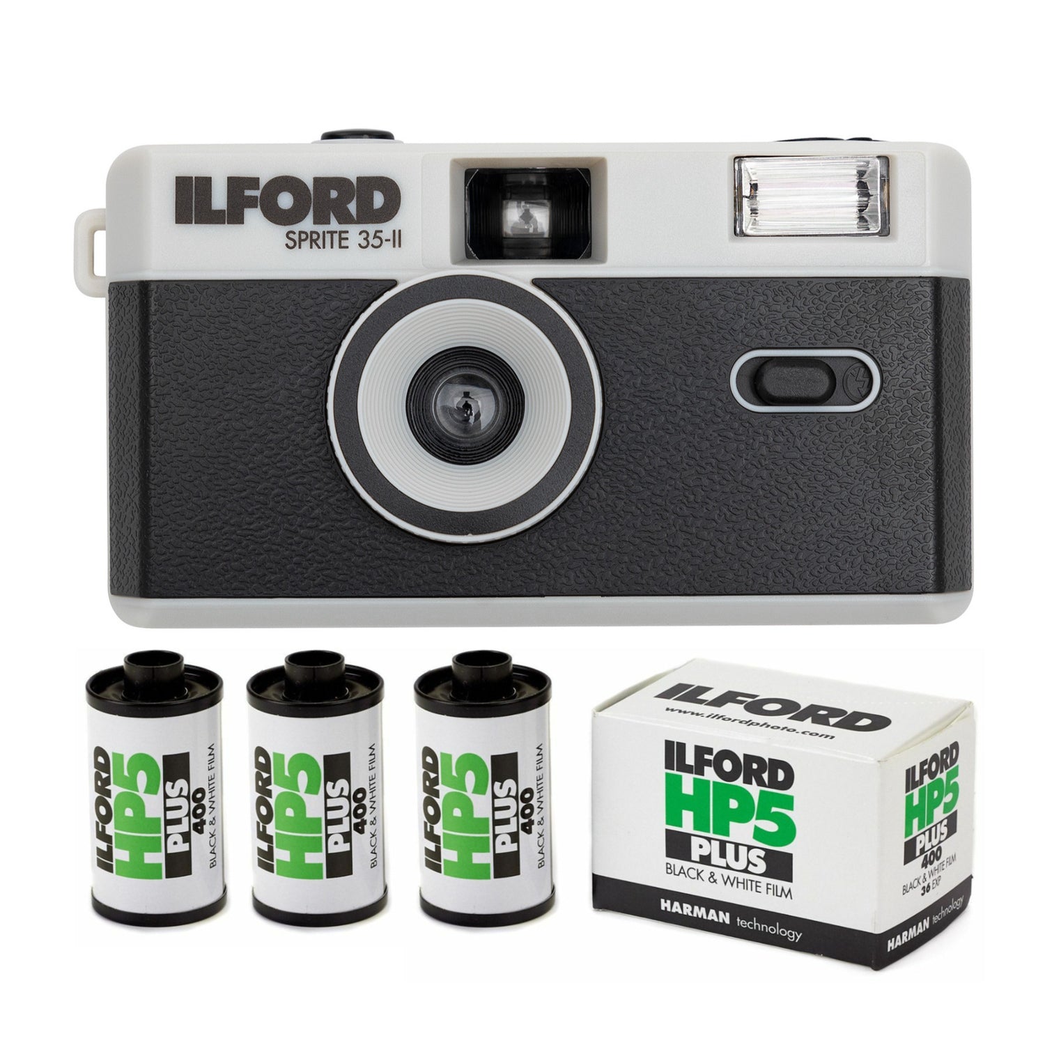 Ilford Sprite 35-II Reloadable 35mm Analog Film Camera and Ilford Film Roll (3-Pack) Bundle