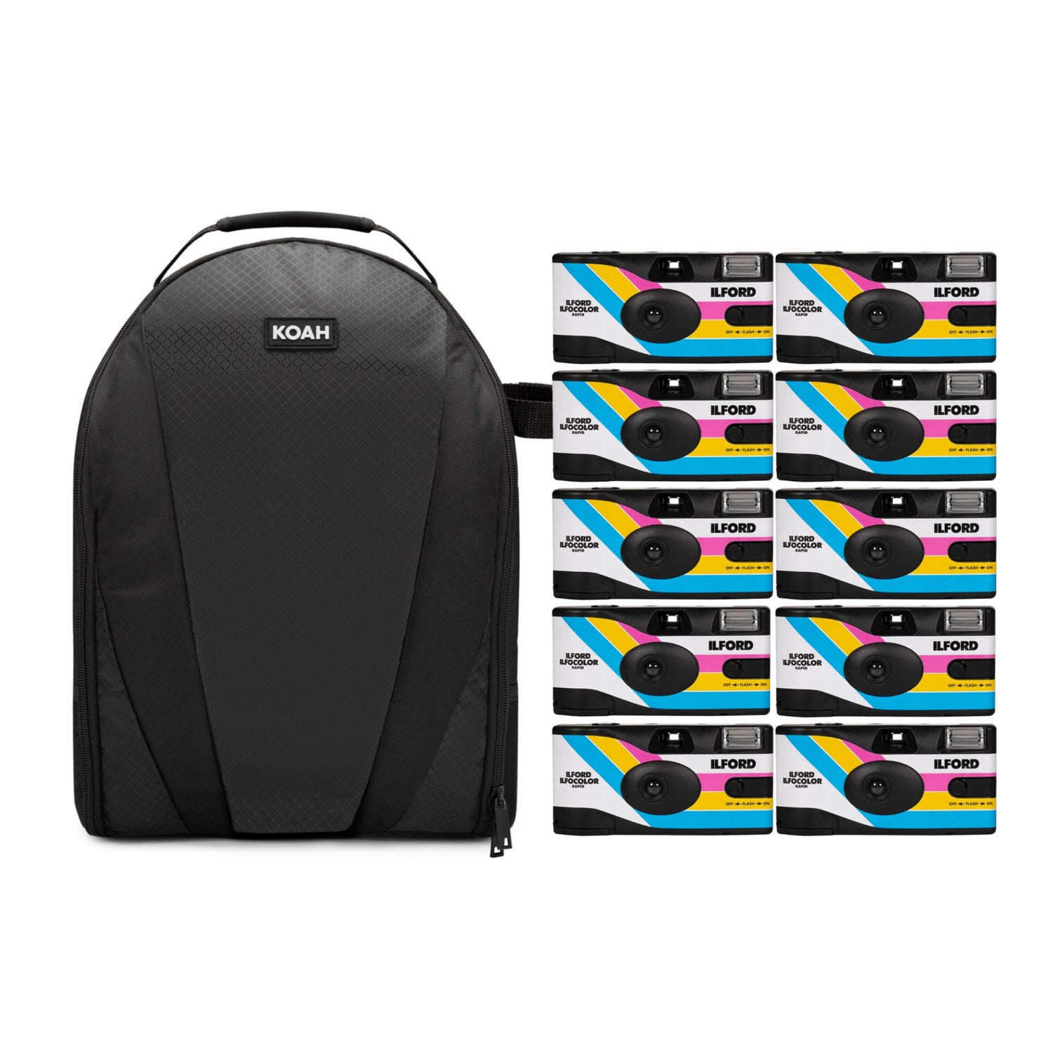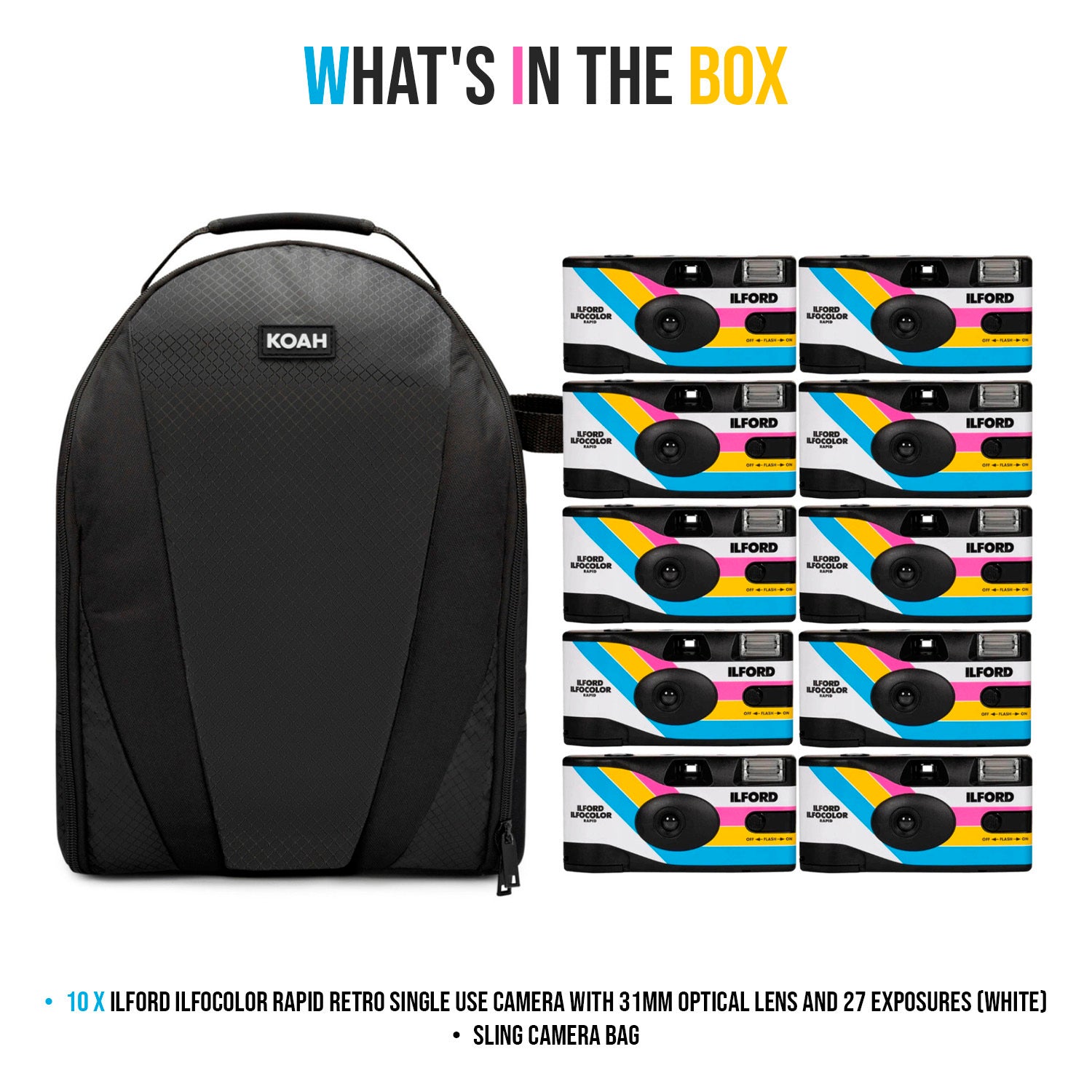 Ilford Ilfocolor Rapid Retro Single Use Camera with 31mm Optical Lens (White, 10-Pack) Bundle