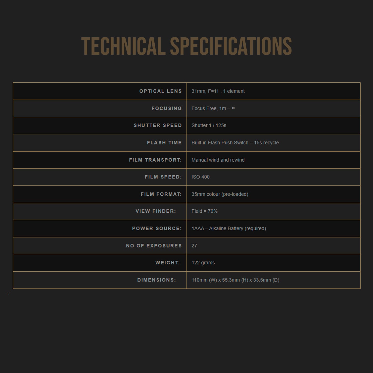 Ilford Ilfocolor Rapid Retro Single Use Camera with 31mm Optical Lens and 27 Exposures (White)