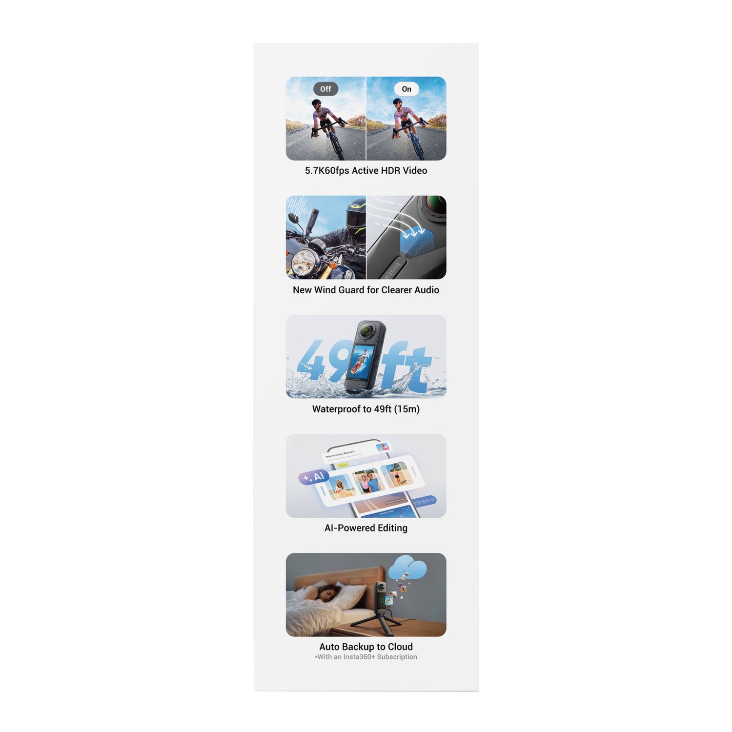 Insta360 X5 360 Action Camera Essentials Bundle with 128GB Micro Memory Card