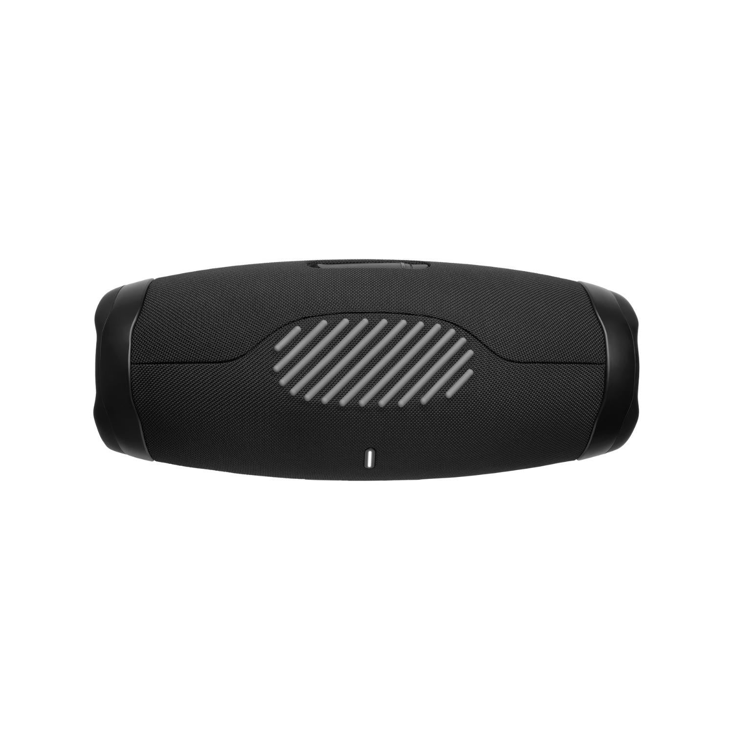 We just made our most powerful portable Bluetooth speaker even better. The iconic silhouette of the JBL Boombox 3 has a bold new update featuring a sturdy metal handle with silicone grips, twin sidecaps, and waterproof and dustproof signature fabric. It’s been redesigned inside too, added with a new subwoofer unleashing much deeper bass and massive JBL Original Pro Sound, all with lower distortion. And 24 hours of play time takes you all the way from your morning workout to a late-night hang with your friends. And for sound that’s practically limitless, instantly connect multiple speakers with the JBL Portable app.