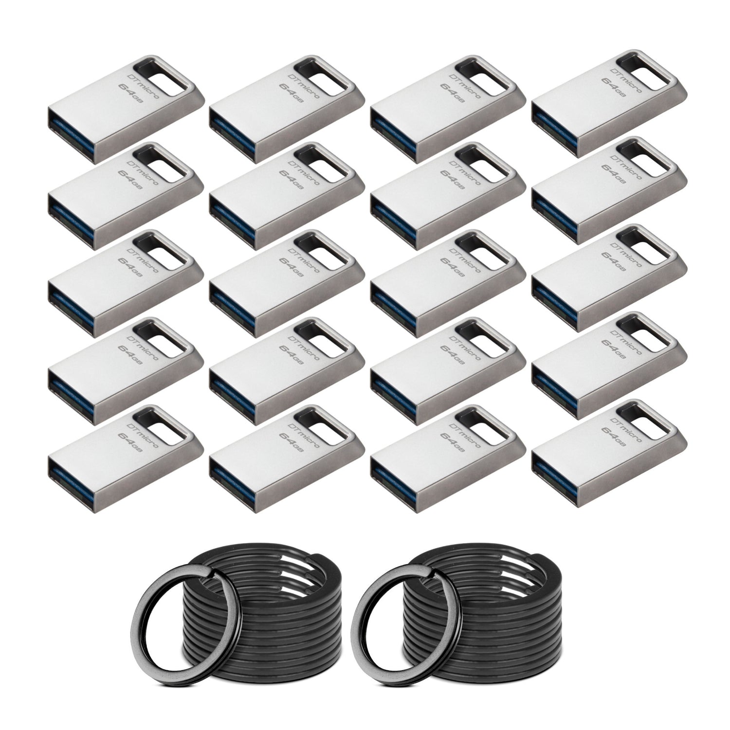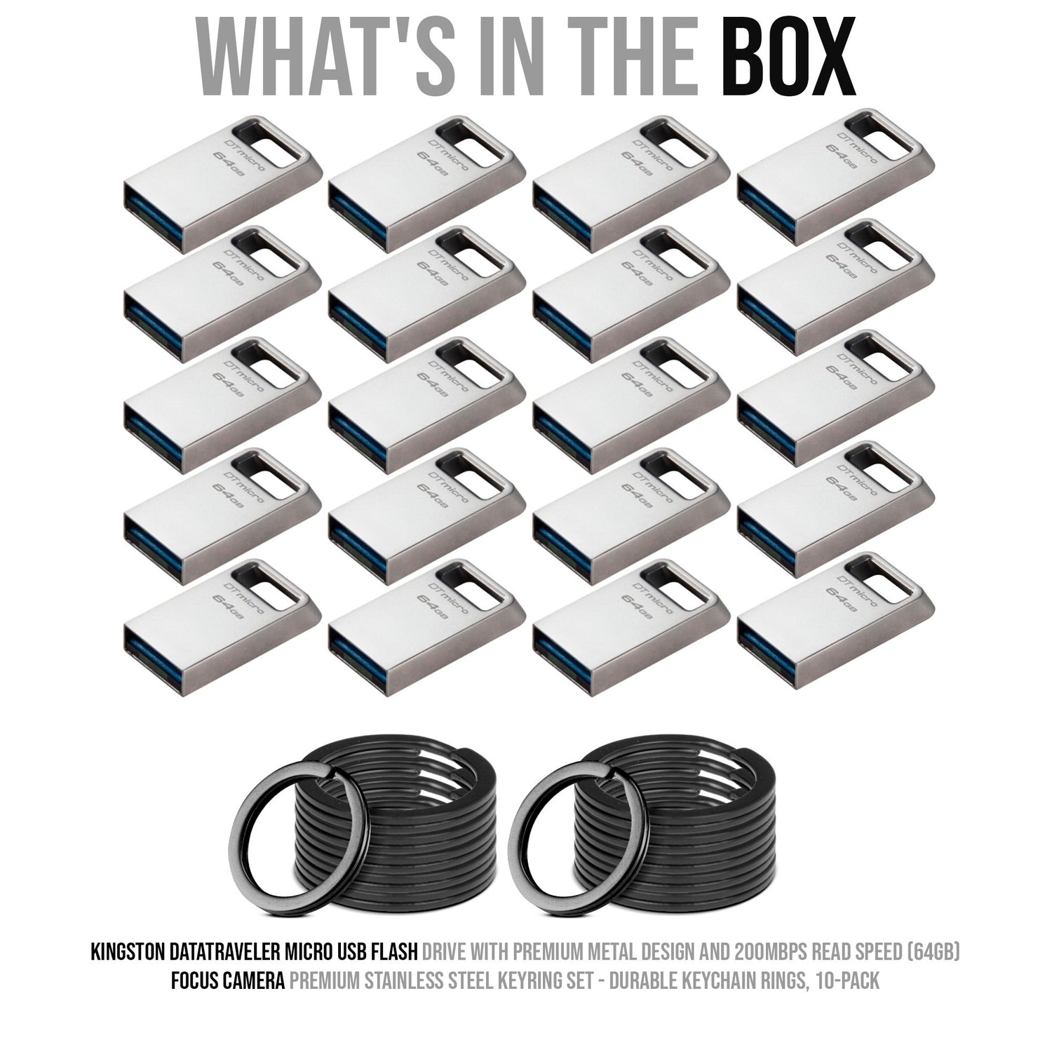Kingston 64GB DataTraveler Micro USB Metal Flash Drive (20-Pack) and Keyrings (20-Pack) Bundle