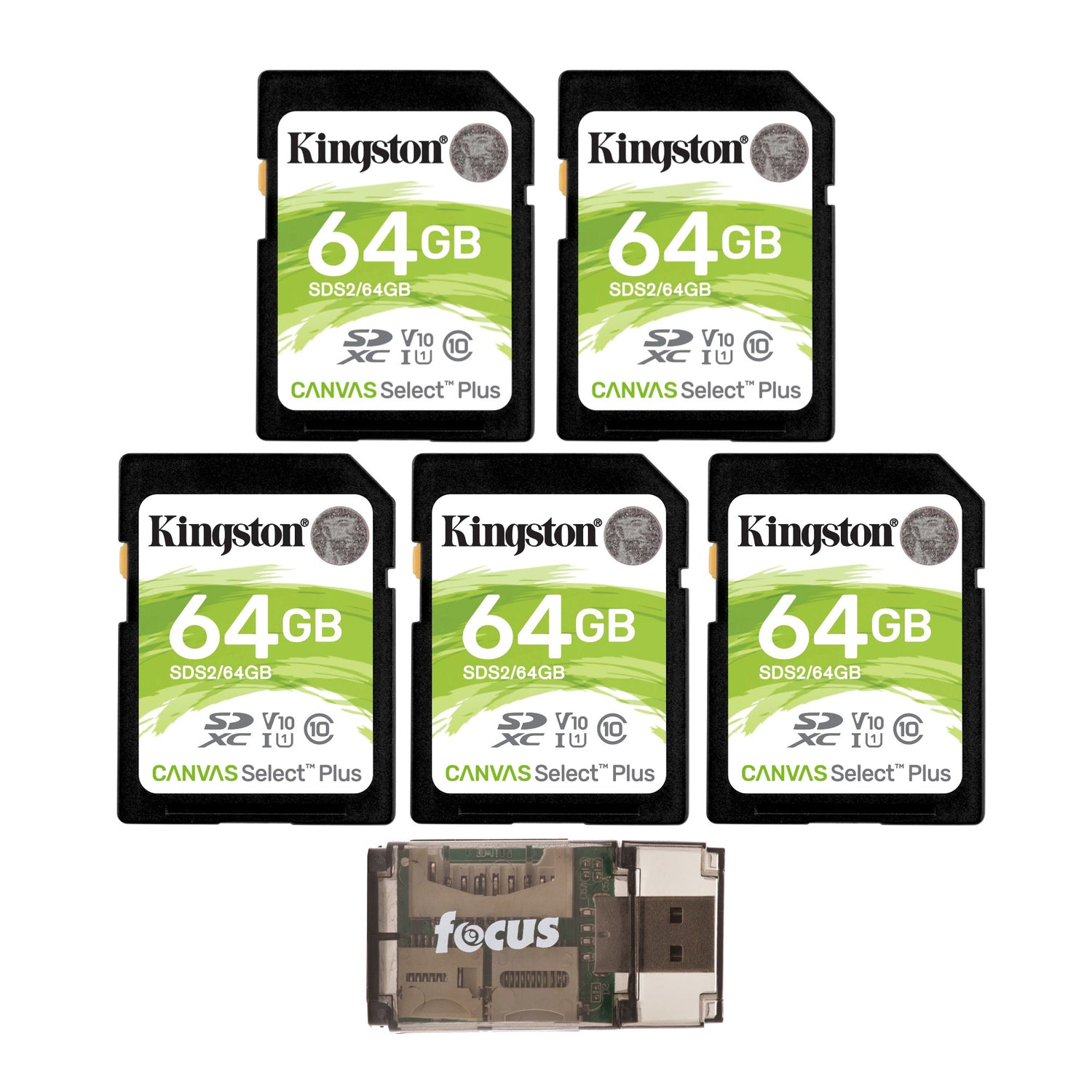 Kingston 64GB SDHC Canvas Select Plus Memory Card (5-Pack) with Focus High Speed Card Reader