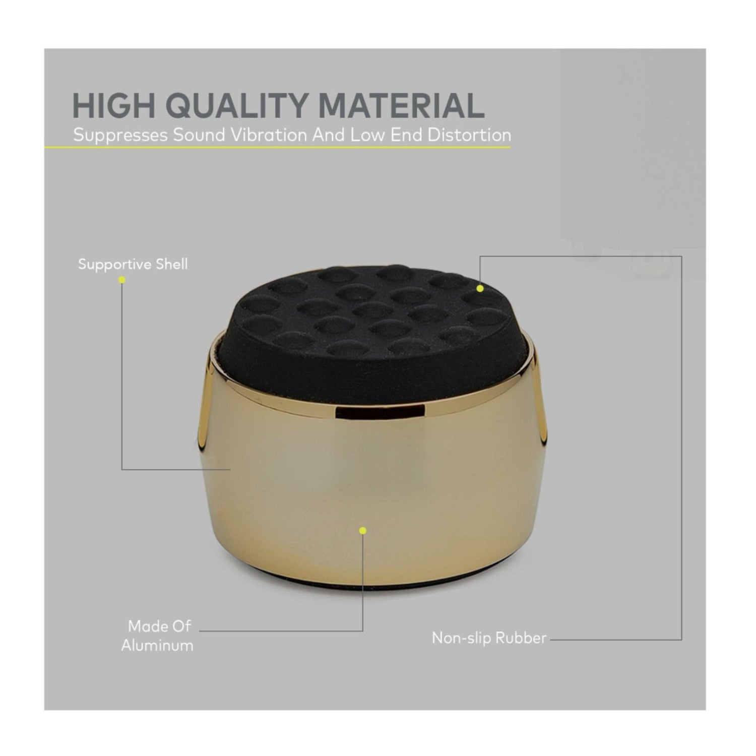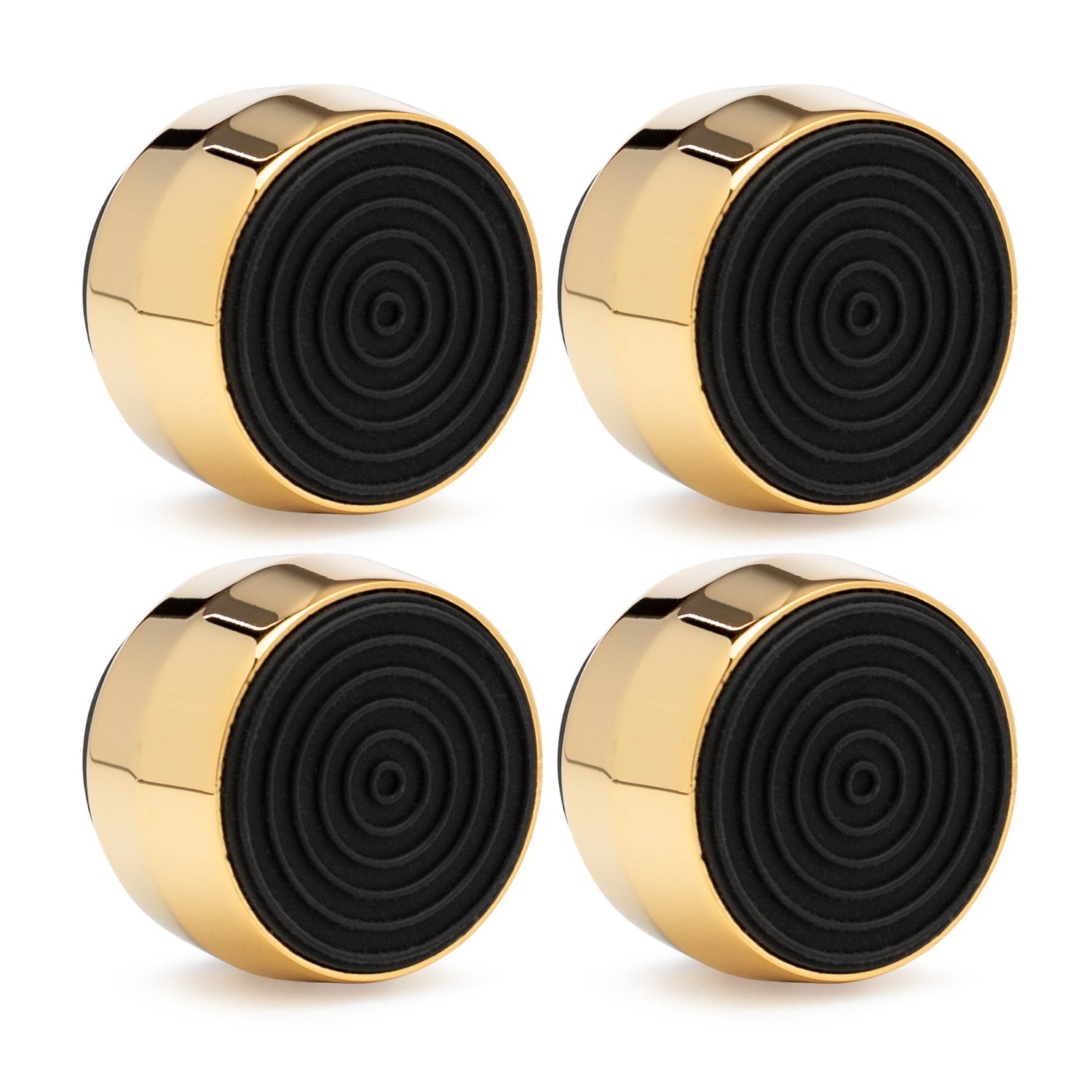 These black and shiny gold isolation feet are designed for a clean, reflective, luxurious look. They are constructed to be anti-slip, providing protection to your subwoofer.